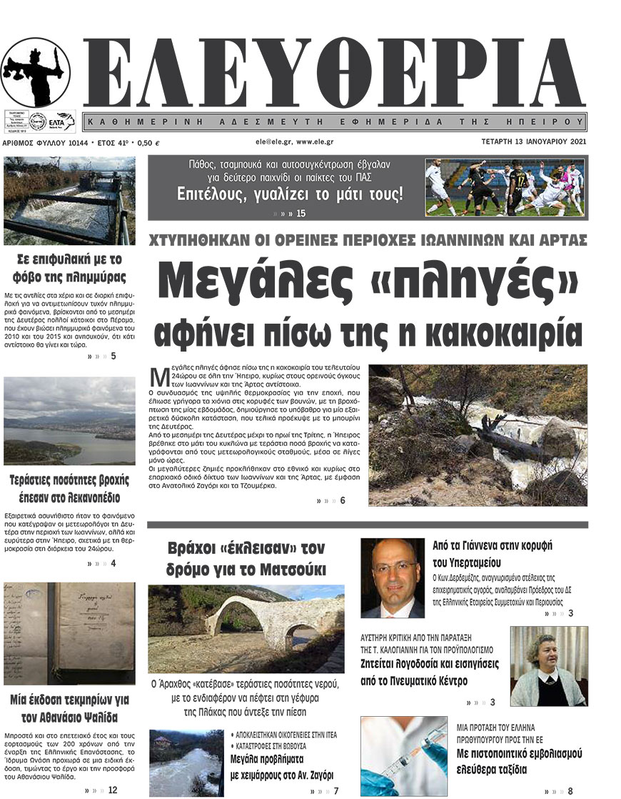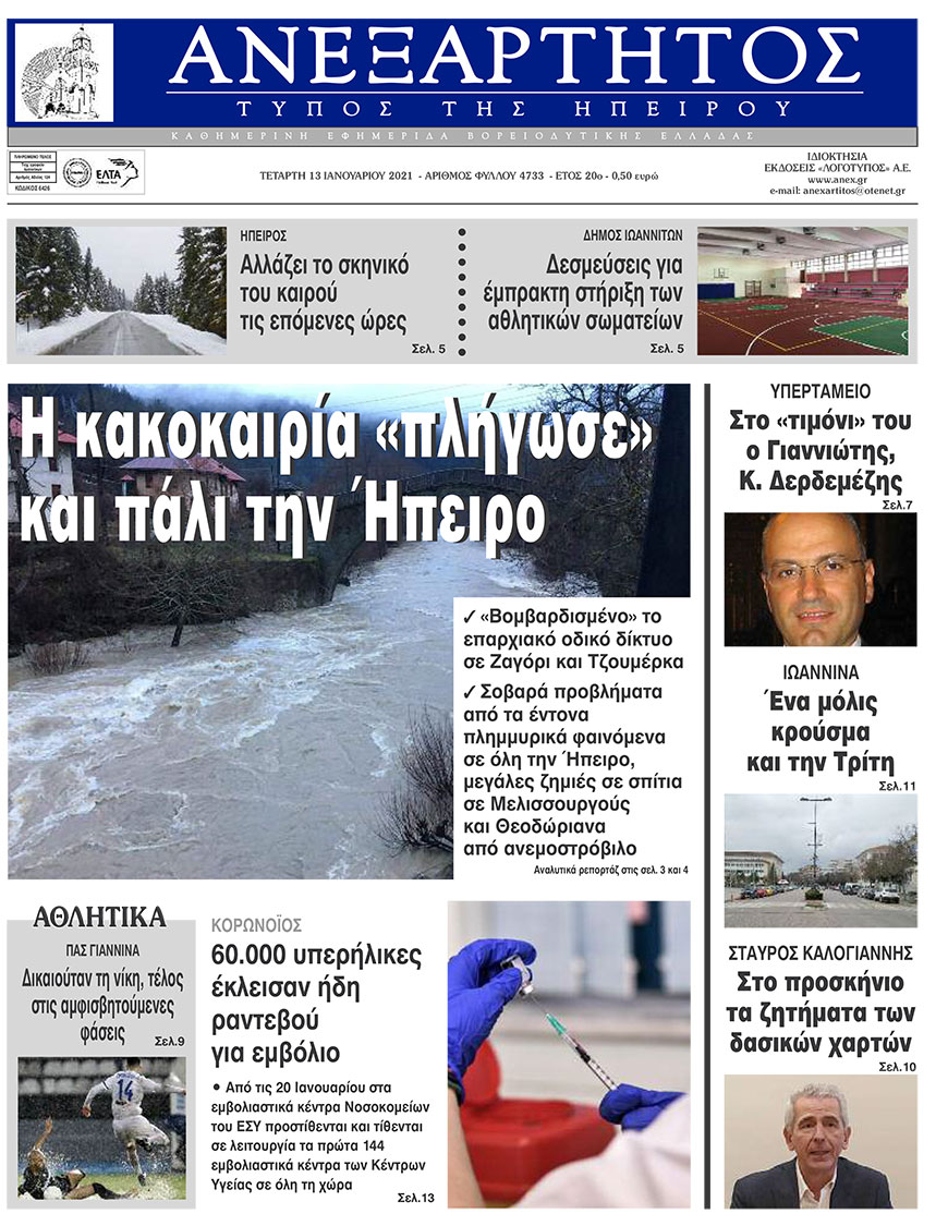 Διαβάστε στα πρωτοσέλιδα των γιαννιώτικων εφημερίδων της Τετάρτης 13 Ιανουαρίου