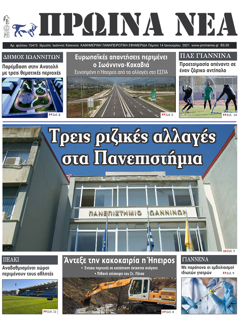 Διαβάστε στα πρωτοσέλιδα των γιαννιώτικων εφημερίδων της Πέμπτης 14 Ιανουαρίου