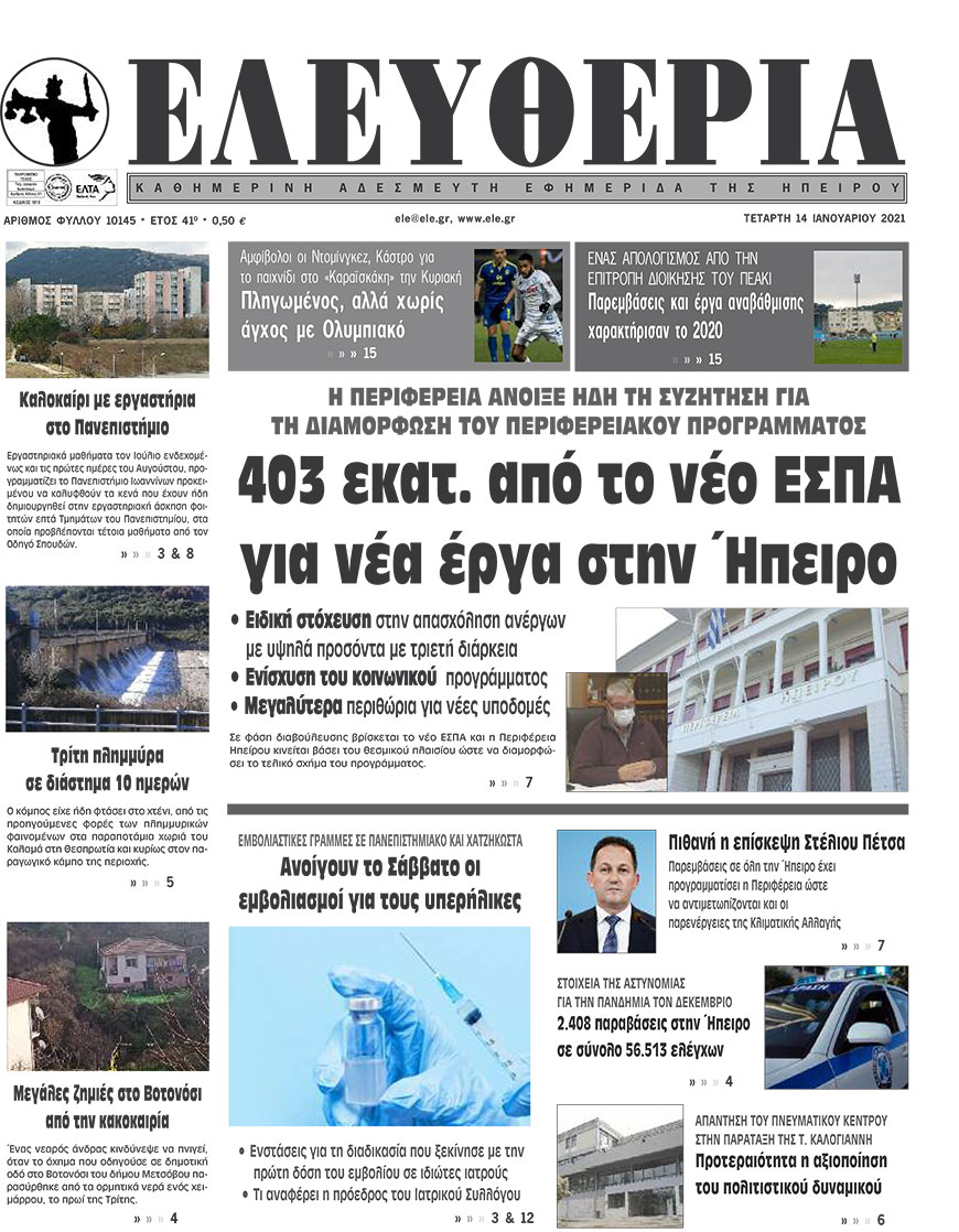 Διαβάστε στα πρωτοσέλιδα των γιαννιώτικων εφημερίδων της Πέμπτης 14 Ιανουαρίου