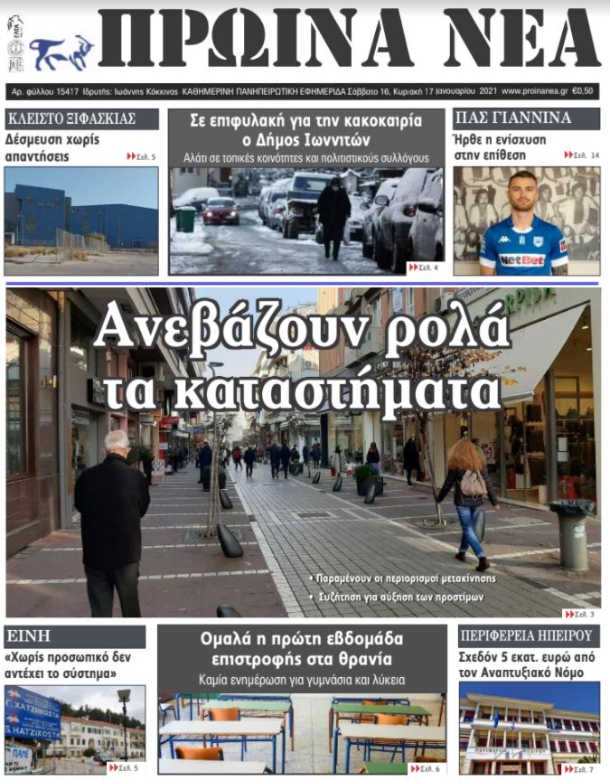Διαβάστε στα πρωτοσέλιδα των γιαννιώτικων εφημερίδων του Σαββατοκύριακου 16-17 Ιανουαρίου
