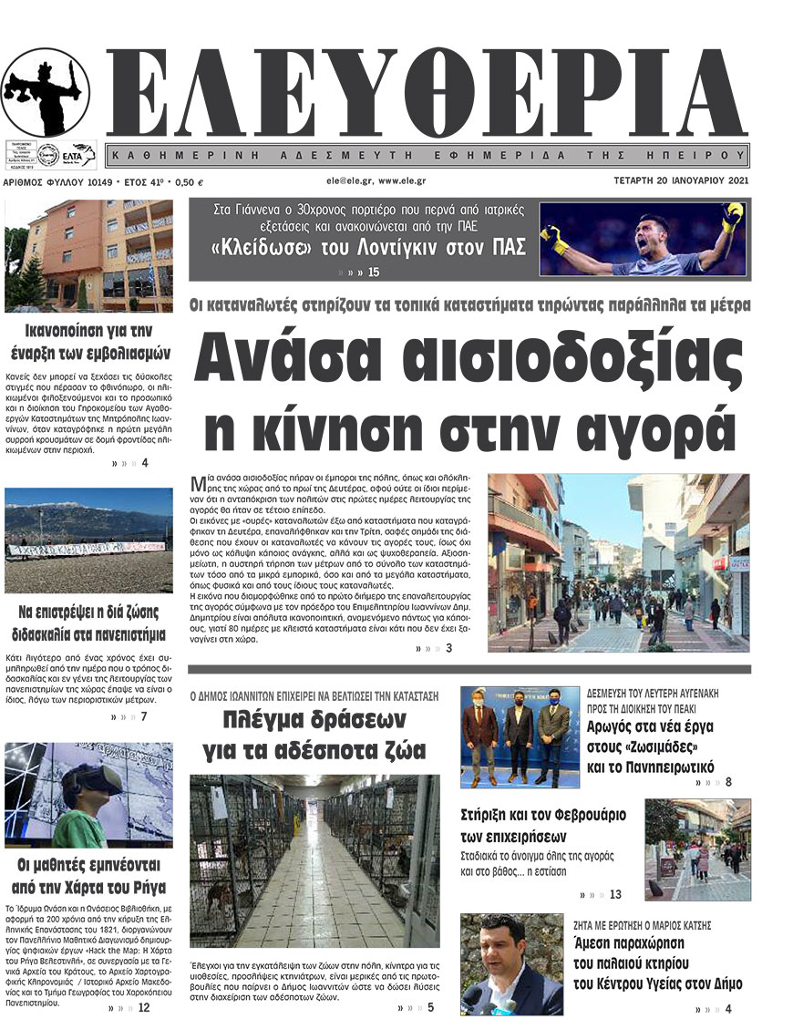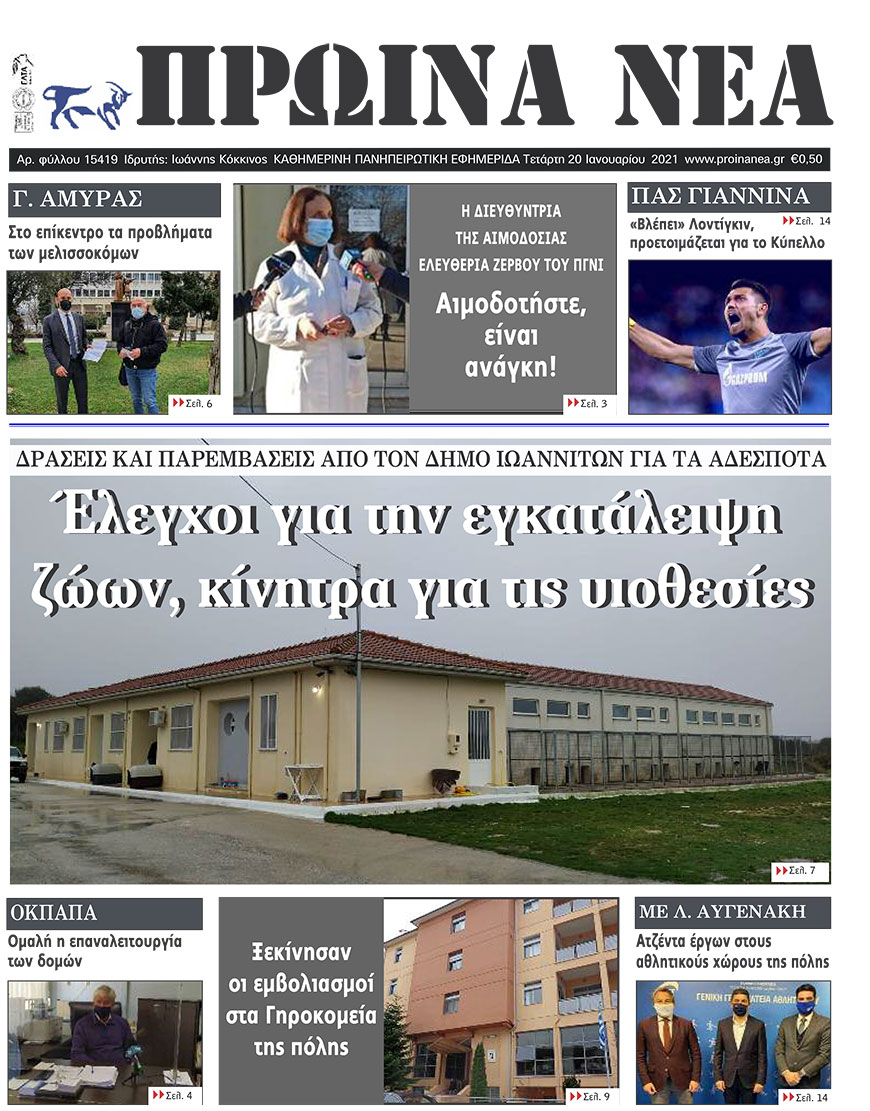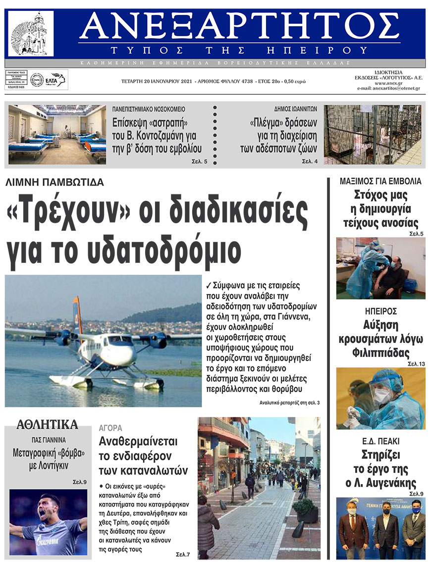 Διαβάστε στα πρωτοσέλιδα των γιαννιώτικων εφημερίδων της Τετάρτης 20 Ιανουαρίου