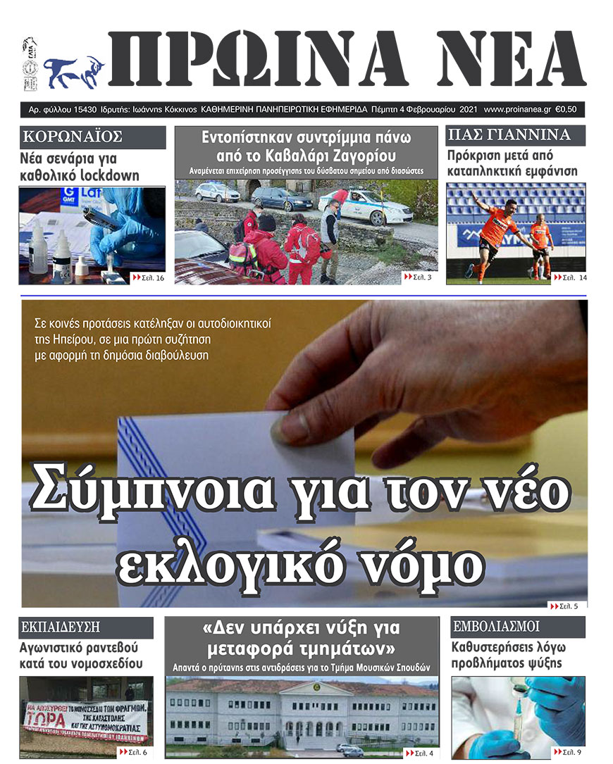 Διαβάστε στα πρωτοσέλιδα των γιαννιώτικων εφημερίδων της Πέμπτης 4 Φεβρουαρίου