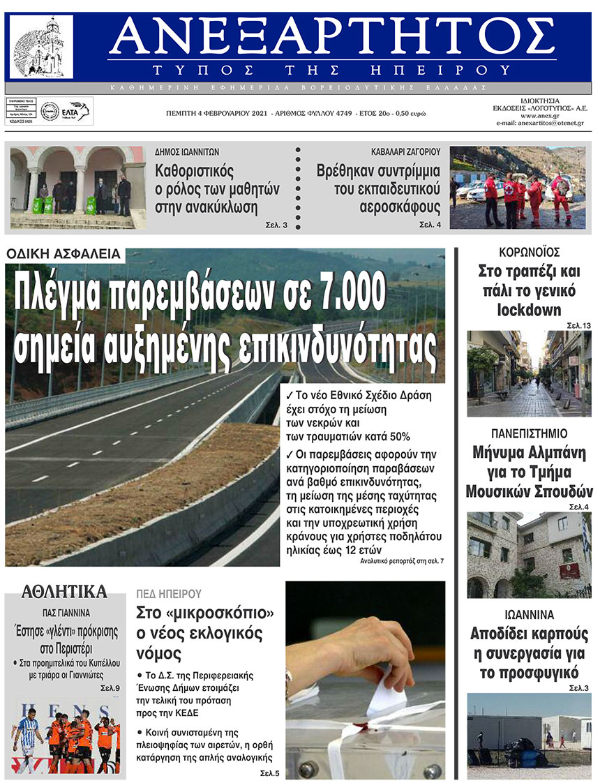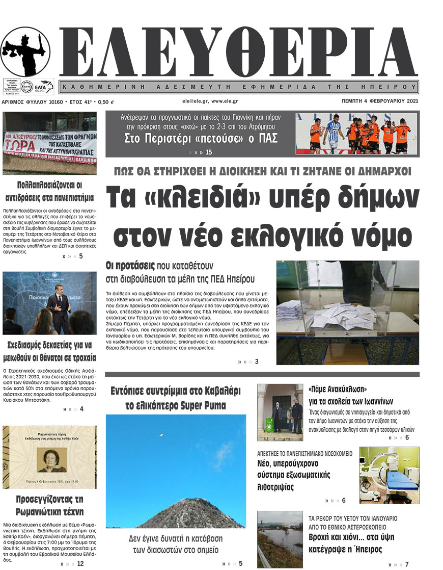 Διαβάστε στα πρωτοσέλιδα των γιαννιώτικων εφημερίδων της Πέμπτης 4 Φεβρουαρίου