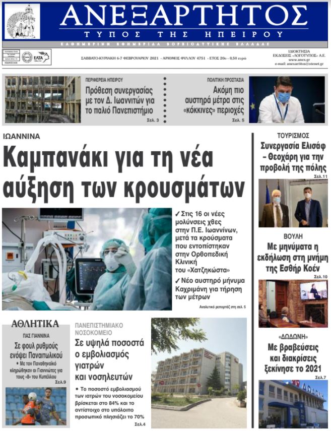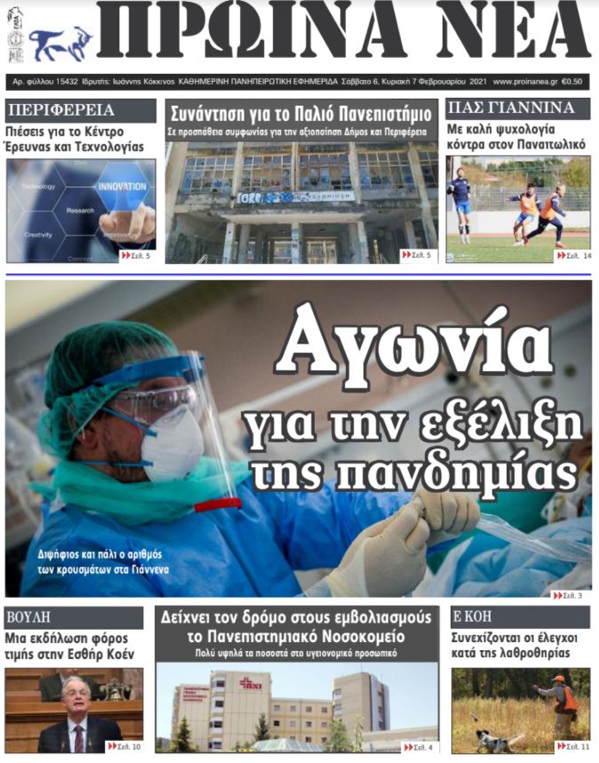 Διαβάστε στα πρωτοσέλιδα των γιαννιώτικων εφημερίδων του Σαββατοκύριακου 6-7 Φεβρουαρίου