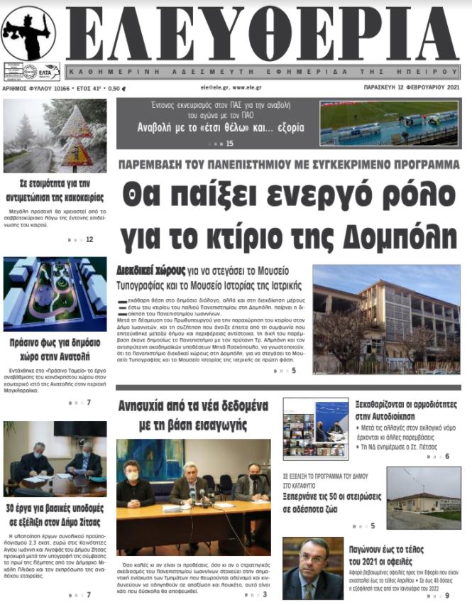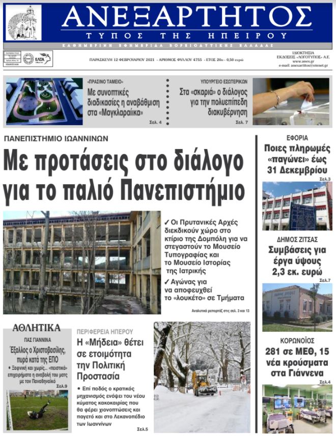 ΑρχικήΕΙΔΗΣΕΙΣΗΠΕΙΡΟΣ ΗΠΕΙΡΟΣ Τα πρωτοσέλιδα των γιαννιώτικων εφημερίδων 12.02.2021 62 FacebookTwitterWhatsAppEmailΤυπώνωViber Διαβάστε στα πρωτοσέλιδα των γιαννιώτικων εφημερίδων της Παρασκευής 12 Φεβρουαρίου TagsΓΙΑΝΝΙΩΤΙΚΕΣ ΕΦΗΜΕΡΙΔΕΣΠΡΩΤΟΣΕΛΙΔΑ FacebookTwitterWhatsAppEmailΤυπώνωViber Προηγούμενο άρθροΠορτογαλία: Παρατείνεται το lockdown ως την 1η ΜαρτίουΕπόμενο άρθροΑνησυχία από τα νέα δεδομένα με τη βάση εισαγωγής ΣΧΕΤΙΚΑ ΑΡΘΡΑ Τα πρωτοσέλιδα των γιαννιώτικων εφημερίδων TOP STORIES 19.11.2025 Τα πρωτοσέλιδα των γιαννιώτικων εφημερίδων ΗΠΕΙΡΟΣ 18.11.2025 Τα πρωτοσέλιδα των γιαννιώτικων εφημερίδων ΗΠΕΙΡΟΣ 15.11.2025 Τα πρωτοσέλιδα των γιαννιώτικων εφημερίδων ΗΠΕΙΡΟΣ 14.11.2025 Τα πρωτοσέλιδα των γιαννιώτικων εφημερίδων ΗΠΕΙΡΟΣ 13.11.2025 Τα πρωτοσέλιδα των γιαννιώτικων εφημερίδων ΗΠΕΙΡΟΣ 12.11.2025 ΣΤΗΝ ΙΔΙΑ ΚΑΤΗΓΟΡΙΑ Αντλήσεις υδάτων και κλειστοί δρόμοι στη Θεσπρωτία ΗΠΕΙΡΟΣ 19.11.2025 Ζημιές σε ηλεκτρικές συσκευές από τον κεραυνό που έπεσε σε στέγη ΗΠΕΙΡΟΣ 19.11.2025 Επίσκεψη μελών του κινήματος ΝΙΚΗΣ στη Διεύθυνση Δευτεροβάθμιας Εκπαίδευσης ΗΠΕΙΡΟΣ 19.11.2025 Ισχυρή κακοκαιρία στην Ήπειρο – Ζημιές, κατολισθήσεις και ρεκόρ βροχόπτωσης ΗΠΕΙΡΟΣ 19.11.2025 Στην Ήπειρο τα μεγαλύτερα ύψη βροχής TOP STORIES 19.11.2025 ΑΔΕΔΥ Ιωαννίνων: Τα αποτελέσματα των εκλογών για τη νέα Εκτελεστική Γραμματεία ΗΠΕΙΡΟΣ 19.11.2025 ΜΗ ΧΑΣΕΤΕ Αντλήσεις υδάτων και κλειστοί δρόμοι στη Θεσπρωτία Ζημιές σε ηλεκτρικές συσκευές από τον κεραυνό που έπεσε σε στέγη Στην Ήπειρο τα μεγαλύτερα ύψη βροχής Νέες ρυθμίσεις για υπερχρεωμένους οφειλέτες, voucher για πρόληψη της οικονομικής κατάρρευσης Στο επίκεντρο ο ρόλος των νοσηλευτών ΔΗΜΟΦΙΛΗ Τρία ψηφιακά εργαλεία για την απαγόρευση πώλησης αλκοόλ και καπνού σε ανηλίκους Αντλήσεις υδάτων και κλειστοί δρόμοι στη Θεσπρωτία Γρίπη Κ: Το εμβόλιο καλύπτει το νέο στέλεχος; Παράταση ένταξης στο πρόγραμμα «Σπίτι μου 2» ΑΔΕΔΥ Ιωαννίνων: Τα αποτελέσματα των εκλογών για τη νέα Εκτελεστική Γραμματεία