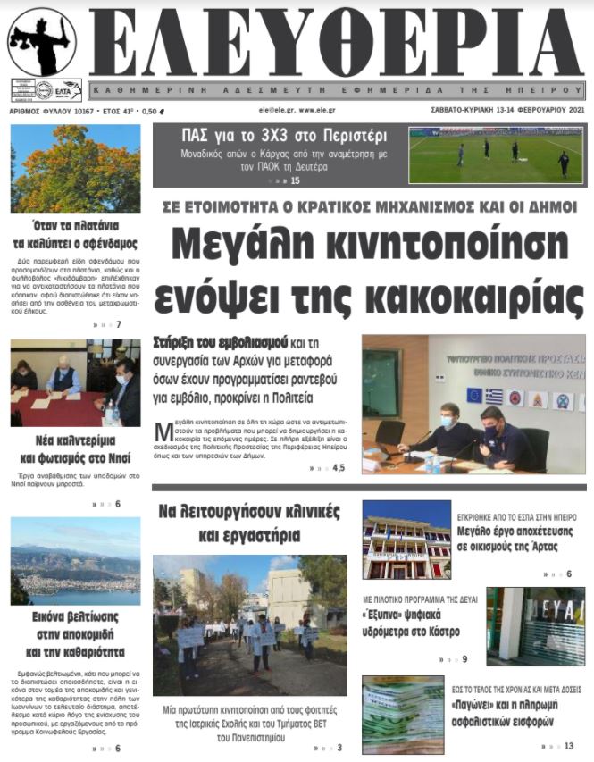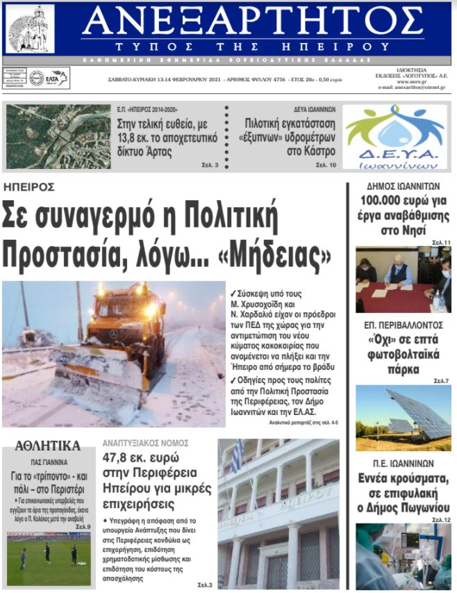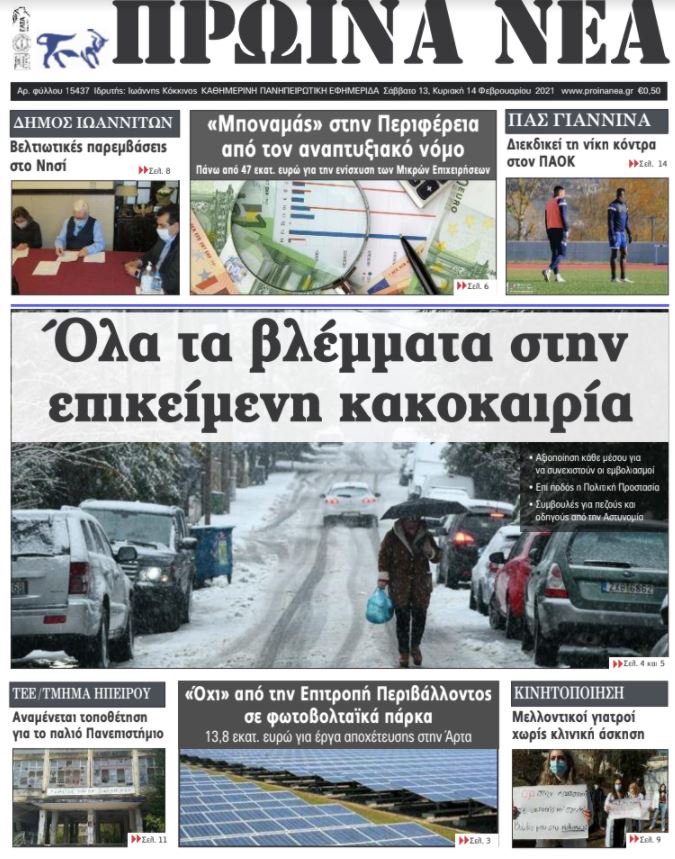 Διαβάστε στα πρωτοσέλιδα των γιαννιώτικων εφημερίδων του Σαββατοκύριακου 13-14 Φεβρουαρίου