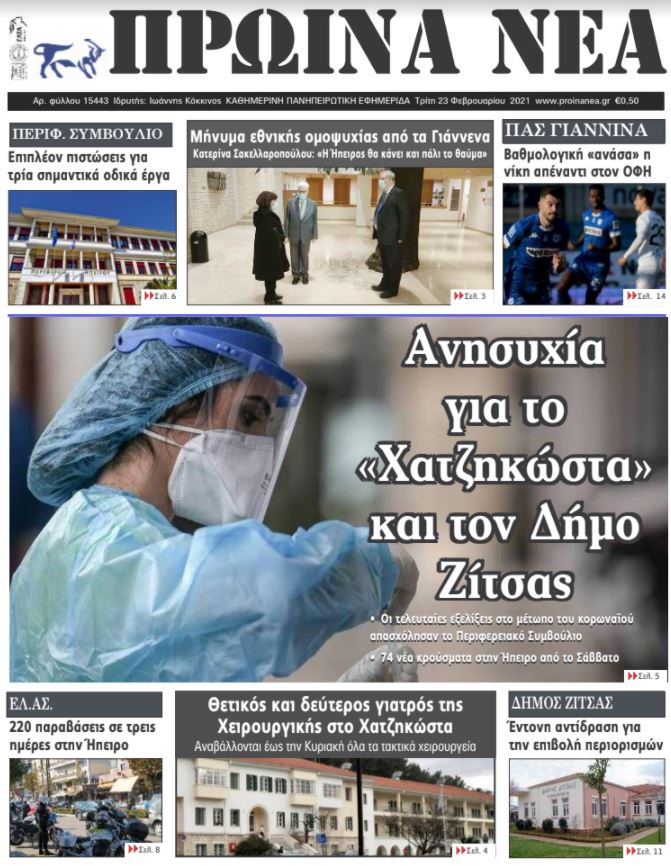Διαβάστε στα πρωτοσέλιδα των γιαννιώτικων εφημερίδων της Τρίτης 23 Φεβρουαρίου