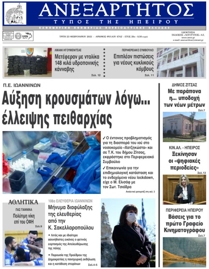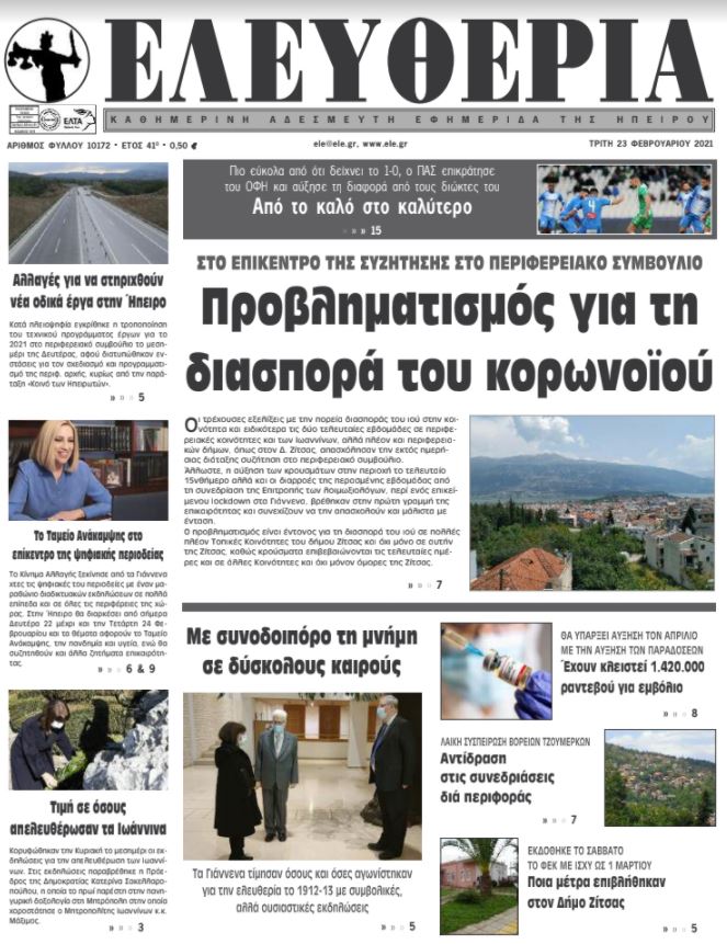 Διαβάστε στα πρωτοσέλιδα των γιαννιώτικων εφημερίδων της Τρίτης 23 Φεβρουαρίου