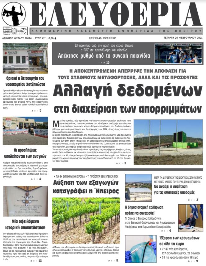 ΑρχικήTOP STORIES TOP STORIESΗΠΕΙΡΟΣ Τα πρωτοσέλιδα των γιαννιώτικων εφημερίδων 24.02.2021 85 FacebookTwitterWhatsAppEmailΤυπώνωViber Διαβάστε στα πρωτοσέλιδα των γιαννιώτικων εφημερίδων της Τετάρτης 24 Φεβρουαρίου TagsΓΙΑΝΝΙΩΤΙΚΕΣ ΕΦΗΜΕΡΙΔΕΣΠΡΩΤΟΣΕΛΙΔΑ FacebookTwitterWhatsAppEmailΤυπώνωViber Προηγούμενο άρθροΚουφοντίνας: Εισαγγελική διάταξη για αναγκαστική σίτιση, μετά από παρέμβαση των ΑρχώνΕπόμενο άρθροΝα ανοίξει η συζήτηση για τις αθλητικές υποδομές ΣΧΕΤΙΚΑ ΑΡΘΡΑ Τα πρωτοσέλιδα των γιαννιώτικων εφημερίδων TOP STORIES 22.11.2025 Τα πρωτοσέλιδα των γιαννιώτικων εφημερίδων ΗΠΕΙΡΟΣ 21.11.2025 Τα πρωτοσέλιδα των γιαννιώτικων εφημερίδων TOP STORIES 20.11.2025 Τα πρωτοσέλιδα των γιαννιώτικων εφημερίδων ΗΠΕΙΡΟΣ 19.11.2025 Τα πρωτοσέλιδα των γιαννιώτικων εφημερίδων ΗΠΕΙΡΟΣ 18.11.2025 Τα πρωτοσέλιδα των γιαννιώτικων εφημερίδων ΗΠΕΙΡΟΣ 15.11.2025 ΣΤΗΝ ΙΔΙΑ ΚΑΤΗΓΟΡΙΑ Τα πρωτοσέλιδα των γιαννιώτικων εφημερίδων TOP STORIES 22.11.2025 Ημέρα Ενόπλων Δυνάμεων με αποκαλυπτήρια προτομών ΗΠΕΙΡΟΣ 21.11.2025 Έρευνες για φόλες στα Τζουμέρκα μετά τον θάνατο κυνηγετικών σκύλων ΗΠΕΙΡΟΣ 21.11.2025 Σε δημόσια πρόσκληση για την αξιοποίηση του Ξενία Ηγουμενίτσας προχωρά η ΕΤΑΔ ΗΠΕΙΡΟΣ 21.11.2025 Ήχησε το «112» στα Ιωάννινα ΗΠΕΙΡΟΣ 21.11.2025 Υπερχείλιση του Αράχθου στην Πλάκα – Φερτά υλικά κάλυψαν τη γέφυρα Μπέλεϋ ΗΠΕΙΡΟΣ 21.11.2025 ΜΗ ΧΑΣΕΤΕ Ικανοποίηση για τη μείωση της ανεργίας Τα πρωτοσέλιδα των γιαννιώτικων εφημερίδων Ημέρα Ενόπλων Δυνάμεων με αποκαλυπτήρια προτομών Ήχησε το «112» στα Ιωάννινα Υπερχείλιση του Αράχθου στην Πλάκα – Φερτά υλικά κάλυψαν τη γέφυρα Μπέλεϋ ΔΗΜΟΦΙΛΗ Δράσεις ενημέρωσης για τον Σεισμικό Κίνδυνο ΣΤΟΙΧΕΙΑ ΤΗΣ ΕΛΣΤΑΤ -Αυξήθηκαν οι συμβολαιογραφικές πράξεις Ο Γιώργος Στύλιος για το νομοσχέδιο για την ΕΡΤ 81.651 αιτήσεις στο North Evia Pass 2025