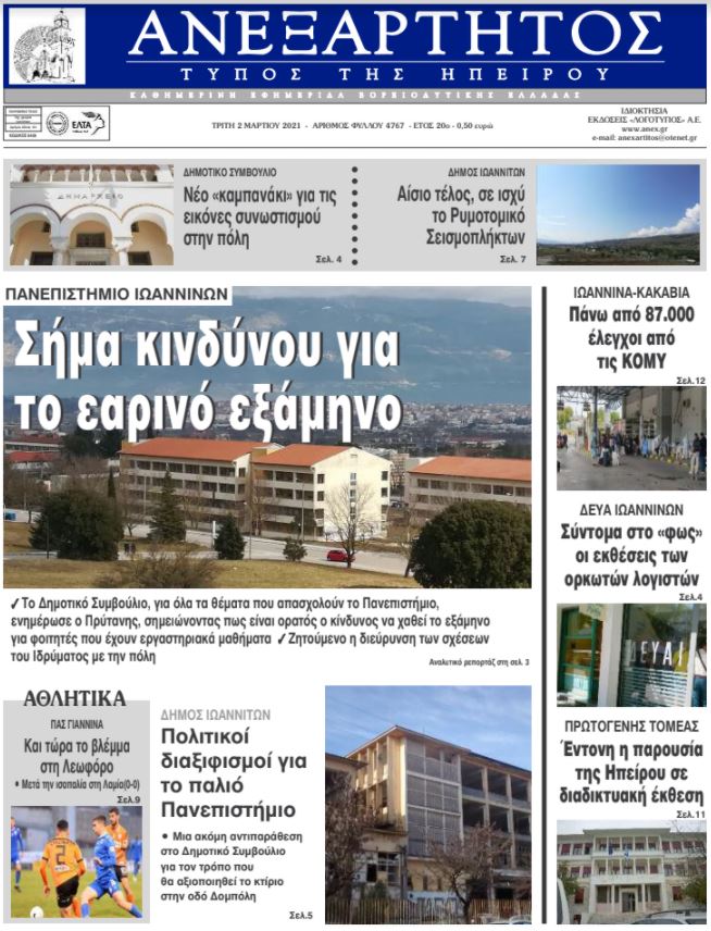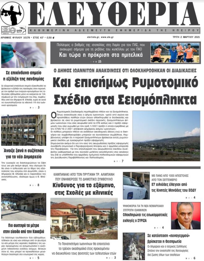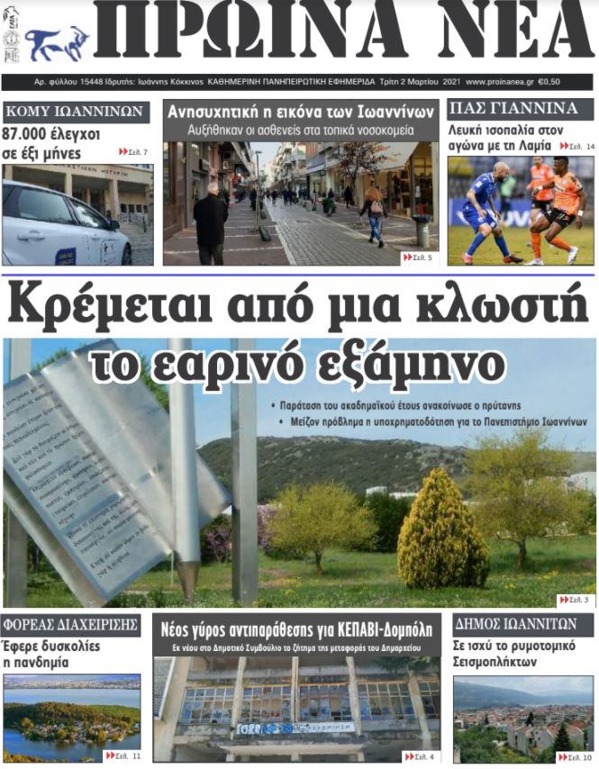 ΑρχικήΕΙΔΗΣΕΙΣΗΠΕΙΡΟΣ ΗΠΕΙΡΟΣ Τα πρωτοσέλιδα των γιαννιώτικων εφημερίδων 02.03.2021 117 FacebookTwitterWhatsAppEmailΤυπώνωViber ΔΙαβάστε στα πρωτοσέλιδα των γιαννιώτικων εφημερίδων της Τρίτης 2 Μαρτίου TagsΓΙΑΝΝΙΩΤΙΚΕΣ ΕΦΗΜΕΡΙΔΕΣΠΡΩΤΟΣΕΛΙΔΑ FacebookTwitterWhatsAppEmailΤυπώνωViber Προηγούμενο άρθροΙαπωνία: Πετάχτηκαν πάνω από 1.000 δόσεις εμβολίων covid-19 λόγω βλάβης σε καταψύκτηΕπόμενο άρθροΠιο αυστηρά τα μέτρα στην είσοδο από την Κακαβιά ΣΧΕΤΙΚΑ ΑΡΘΡΑ Τα πρωτοσέλιδα των γιαννιώτικων εφημερίδων TOP STORIES 05.11.2025 Τα πρωτοσέλιδα των γιαννιώτικων εφημερίδων ΗΠΕΙΡΟΣ 04.11.2025 Τα πρωτοσέλιδα των γιαννιώτικων εφημερίδων TOP STORIES 01.11.2025 Τα πρωτοσέλιδα των γιαννιώτικων εφημερίδων ΗΠΕΙΡΟΣ 31.10.2025 Τα πρωτοσέλιδα των γιαννιώτικων εφημερίδων ΗΠΕΙΡΟΣ 30.10.2025 Τα πρωτοσέλιδα των γιαννιώτικων εφημερίδων ΗΠΕΙΡΟΣ 28.10.2025 ΣΤΗΝ ΙΔΙΑ ΚΑΤΗΓΟΡΙΑ Ιωάννινα: Συνελήφθη κυνηγός μετά από βολίδα που χτύπησε σταθμευμένο όχημα ΗΠΕΙΡΟΣ 05.11.2025 Προτάσεις του ΤΕΕ για τη συνέχιση της λειτουργίας και των έργων της Εγνατίας ΗΠΕΙΡΟΣ 05.11.2025 Οι κάτοικοι του Μετσόβου λένε «όχι» στο λουκέτο του ταχυδρομείου ΗΠΕΙΡΟΣ 05.11.2025 Διεθνές ενδιαφέρον για την κινητοποίηση κατά του λουκέτου στα ΕΛΤΑ Πραμάντων ΗΠΕΙΡΟΣ 05.11.2025 Στα όριά του το ΠΓΝΙ με σχεδόν 500.000 ασθενείς μέσα στο 2025 ΗΠΕΙΡΟΣ 05.11.2025 Τα πρωτοσέλιδα των γιαννιώτικων εφημερίδων TOP STORIES 05.11.2025 ΜΗ ΧΑΣΕΤΕ Στα όριά του το ΠΓΝΙ με σχεδόν 500.000 ασθενείς μέσα στο 2025 Παραίτηση Σκλήκα μετά τη σφοδρή αντίδραση των βουλευτών Πολιτικές εξελίξεις και προσυνεδριακός διάλογος Τα πρωτοσέλιδα των γιαννιώτικων εφημερίδων Για «συντήρηση» του δρόμου στο Γράμμο τα ερπυστριοφόρα του Στρατού ΔΗΜΟΦΙΛΗ Μαμντάνι: Ποιος είναι ο νέος δήμαρχος της Νέας Υόρκης Ιωάννινα: Συνελήφθη κυνηγός μετά από βολίδα που χτύπησε σταθμευμένο όχημα Βορίζια: Στον εισαγγελέα τα τρία αδέλφια Προσωπικός Αριθμός: Εκπνέει σήμερα η προθεσμία – Αυτόματη απόδοση από αύριο Αναστολή αναγκαστικών εκτελέσεων για πληγέντες από τις πυρκαγιές