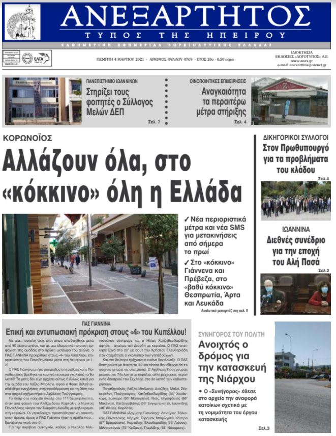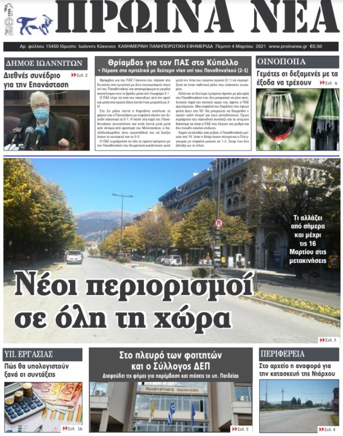 ΑρχικήΕΙΔΗΣΕΙΣΗΠΕΙΡΟΣ ΗΠΕΙΡΟΣ Τα πρωτοσέλιδα των γιαννιώτικων εφημερίδων 04.03.2021 144 FacebookTwitterWhatsAppEmailΤυπώνωViber Διαβάστε στα πρωτοσέλιδα των γιαννιώτικων εφημερίδων της Πέμπτης 4 Μαρτίου TagsΓΙΑΝΝΙΩΤΙΚΕΣ ΕΦΗΜΕΡΙΔΕΣΠΡΩΤΟΣΕΛΙΔΑ FacebookTwitterWhatsAppEmailΤυπώνωViber Προηγούμενο άρθροΤρελό πανηγύρι από τα αποδυτήρια του ΠΑΣ!Επόμενο άρθρο«Εξερευνώντας τις πόλεις μας» ΣΧΕΤΙΚΑ ΑΡΘΡΑ Τα πρωτοσέλιδα των γιαννιώτικων εφημερίδων TOP STORIES 08.11.2025 Τα πρωτοσέλιδα των γιαννιώτικων εφημερίδων ΗΠΕΙΡΟΣ 07.11.2025 Τα πρωτοσέλιδα των γιαννιώτικων εφημερίδων ΗΠΕΙΡΟΣ 06.11.2025 Τα πρωτοσέλιδα των γιαννιώτικων εφημερίδων ΗΠΕΙΡΟΣ 05.11.2025 Τα πρωτοσέλιδα των γιαννιώτικων εφημερίδων ΗΠΕΙΡΟΣ 04.11.2025 Τα πρωτοσέλιδα των γιαννιώτικων εφημερίδων TOP STORIES 01.11.2025 ΣΤΗΝ ΙΔΙΑ ΚΑΤΗΓΟΡΙΑ Στις 22 Νοεμβρίου η τελετή ενθρόνισης του Μητροπολίτη Κόνιτσας ΗΠΕΙΡΟΣ 09.11.2025 Τα πρωτοσέλιδα των γιαννιώτικων εφημερίδων TOP STORIES 08.11.2025 Μαθητές του 5ου Γυμνασίου Ιωαννίνων στην κορυφή του Μιτσικελίου ΗΠΕΙΡΟΣ 07.11.2025 Επίτιμος Διδάκτορας του Τμήματος Φιλολογίας ο Γιώργος Κεχαγιόγλου ΗΠΕΙΡΟΣ 07.11.2025 Οι ναυαγοσωστικές δαπάνες «πνίγουν» τους δήμους ΗΠΕΙΡΟΣ 07.11.2025 Ενημερωτική ημερίδα στα Ιωάννινα για τη δωρεά και μεταμόσχευση οργάνων ΗΠΕΙΡΟΣ 07.11.2025 ΜΗ ΧΑΣΕΤΕ Τα πρωτοσέλιδα των γιαννιώτικων εφημερίδων Οι ναυαγοσωστικές δαπάνες «πνίγουν» τους δήμους Έκτακτο δελτίο επιδείνωσης από την ΕΜΥ – Πού θα βρέχει το επόμενο τριήμερο Μπαλωθιές τέλος στην Κρήτη – Τα μέτρα για την παράνομη οπλοκατοχή Χωρίς πινακίδες παραμένουν χιλιάδες δίκυκλα ΔΗΜΟΦΙΛΗ Λευκάδα: Άνδρας καταδικάστηκε σε φυλάκιση για επίθεση στην πρώην σύντροφό του ΑΠΟ 14 ΝΟΕΜΒΡΙΟΥ -Ξεκινούν οι αιτήσεις για την «Πρώιμη Παιδική Παρέμβαση» Στις 22 Νοεμβρίου η τελετή ενθρόνισης του Μητροπολίτη Κόνιτσας Με αυτόματο τρόπο ο Προσωπικός Αριθμός