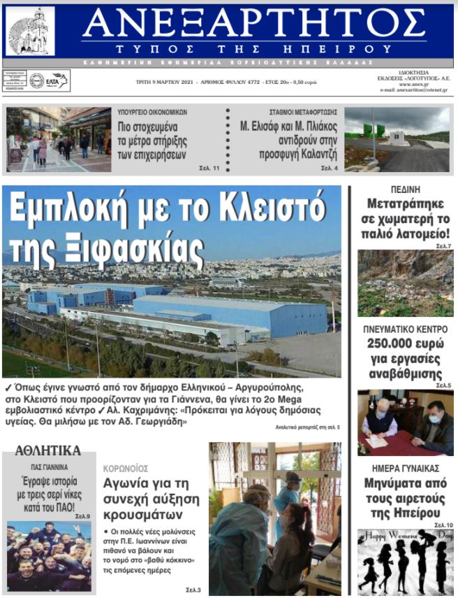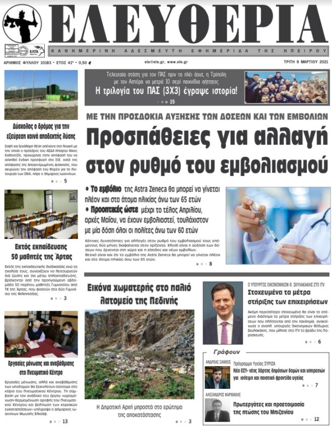ΑρχικήΕΙΔΗΣΕΙΣΗΠΕΙΡΟΣ ΗΠΕΙΡΟΣ Τα πρωτοσέλιδα των γιαννιώτικων εφημερίδων 09.03.2021 74 FacebookTwitterWhatsAppEmailΤυπώνωViber Διαβάστε στα πρωτοσέλιδα των γιαννιώτικων εφημερίδων της Τρίτης 9 Μαρτίου TagsΓΙΑΝΝΙΩΤΙΚΕΣ ΕΦΗΜΕΡΙΔΕΣΠΡΩΤΟΣΕΛΙΔΑ FacebookTwitterWhatsAppEmailΤυπώνωViber Προηγούμενο άρθροΕπτανησιακή Συνομοσπονδία: Ψήφισμα για τους δασικούς χάρτεςΕπόμενο άρθροΠώς η Κύπρος δημιουργεί γιατρούς «νέας γενιάς» ΣΧΕΤΙΚΑ ΑΡΘΡΑ Τα πρωτοσέλιδα των γιαννιώτικων εφημερίδων TOP STORIES 28.10.2025 Τα πρωτοσέλιδα των γιαννιώτικων εφημερίδων ΗΠΕΙΡΟΣ 25.10.2025 Τα πρωτοσέλιδα των γιαννιώτικων εφημερίδων ΗΠΕΙΡΟΣ 24.10.2025 Τα πρωτοσέλιδα των γιαννιώτικων εφημερίδων ΗΠΕΙΡΟΣ 23.10.2025 Τα πρωτοσέλιδα των γιαννιώτικων εφημερίδων ΗΠΕΙΡΟΣ 22.10.2025 Τα πρωτοσέλιδα των γιαννιώτικων εφημερίδων ΗΠΕΙΡΟΣ 21.10.2025 ΣΤΗΝ ΙΔΙΑ ΚΑΤΗΓΟΡΙΑ Δυναμική αντίδραση για την αποτροπή «λουκέτου» στα ΕΛΤΑ Πραμάντων ΗΠΕΙΡΟΣ 29.10.2025 Με λαμπρότητα ο εορτασμός της Εθνικής Επετείου της 28ης Οκτωβρίου στον Δήμο Ζίτσας ΗΠΕΙΡΟΣ 29.10.2025 Τιμητική εκδήλωση για τον Παγκόσμιο Πρωταθλητή Στέφανο Ντούσκο ΗΠΕΙΡΟΣ 29.10.2025 Ο Δήμος Ζηρού για τη μεταφορά και ταφή αποβλήτων στη Γέφυρα Καλογήρου ΗΠΕΙΡΟΣ 29.10.2025 Μπέγκας: Η πράσινη μετάβαση είναι μαραθώνιος συνεργασίας ΗΠΕΙΡΟΣ 29.10.2025 «ΚΑΛΠΑΚΙΑ 2025»: Εδώ όπου η Ιστορία Ανασαίνει ΗΠΕΙΡΟΣ 29.10.2025 ΜΗ ΧΑΣΕΤΕ «Ανοργάνωτο» βαρομετρικό χαμηλό έρχεται την Παρασκευή Απόβλητα από την Κέρκυρα ενταφιάζονταν στην Ήπειρο – Τρεις συλλήψεις, δώδεκα άτομα καταζητούνται Με λαμπρότητα η παρέλαση για την επέτειο του «ΟΧΙ» Τα πρωτοσέλιδα των γιαννιώτικων εφημερίδων Οι ήρωες πεσόντες που ακόμη περιμένουν… ΔΗΜΟΦΙΛΗ 32 παραβάσεις για μη χρήση κράνους στην Ήπειρο Ηγουμενίτσα: Συνελήφθη αλλοδαπός που μετέφερε παράτυπο μετανάστη Βραζιλία: Αιματηρή αστυνομική επιχείρηση στις φαβέλες του Ρίο Απόβλητα από την Κέρκυρα ενταφιάζονταν στην Ήπειρο – Τρεις συλλήψεις, δώδεκα άτομα καταζητούνται «Ανοργάνωτο» βαρομετρικό χαμηλό έρχεται την Παρασκευή