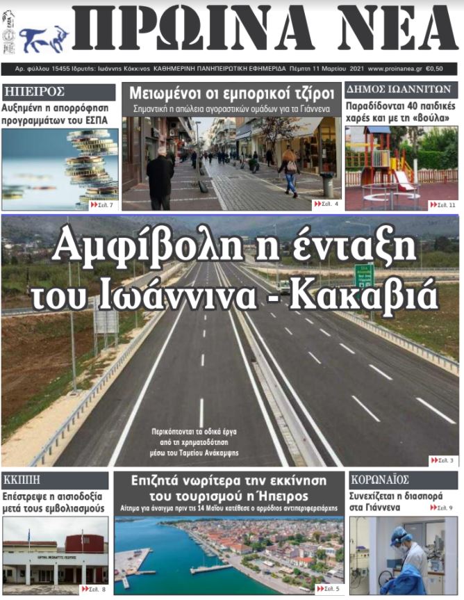 Διαβάστε στα πρωτοσέλιδα των γιαννιώτικων εφημερίδων της Πέμπτης 11 Μαρτίου