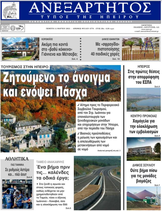 Διαβάστε στα πρωτοσέλιδα των γιαννιώτικων εφημερίδων της Πέμπτης 11 Μαρτίου