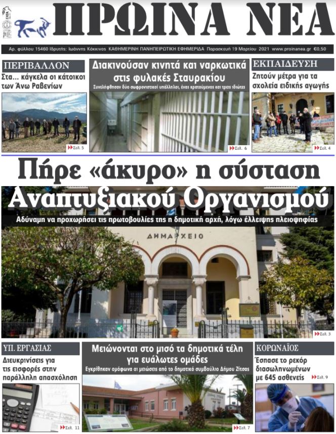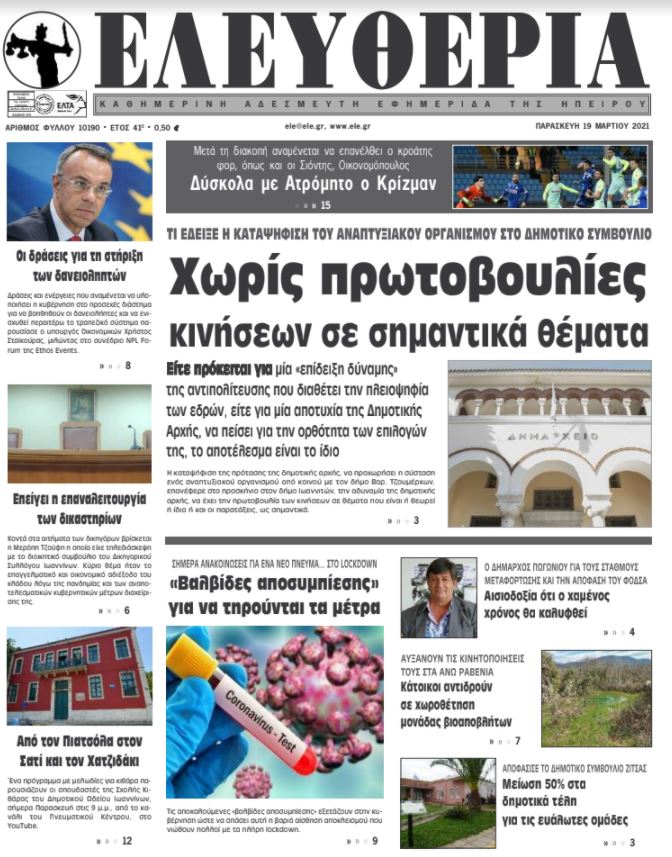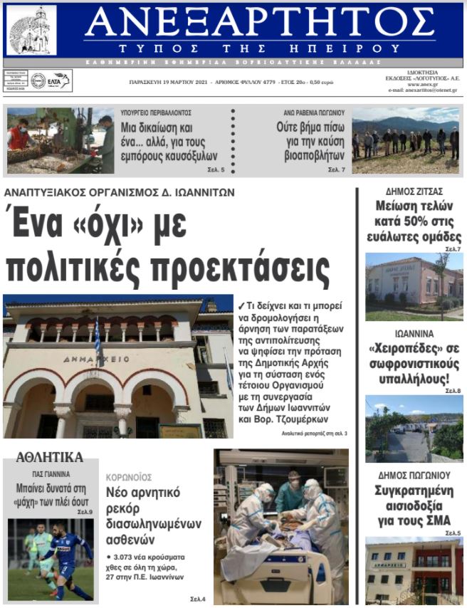 Διαβάστε στα πρωτοσέλιδα των γιαννιώτικων εφημερίδων της Παρασκευής 19 Μαρτίου