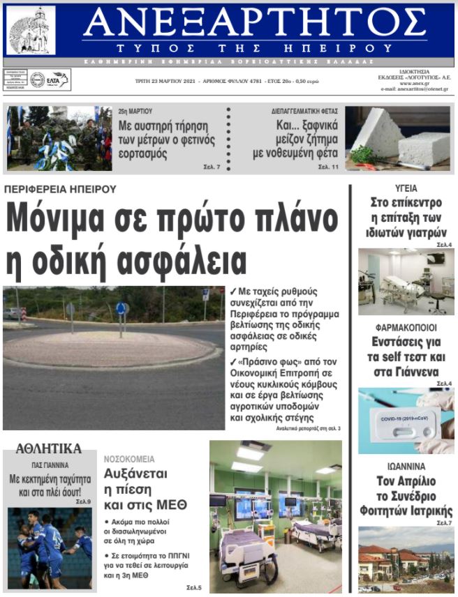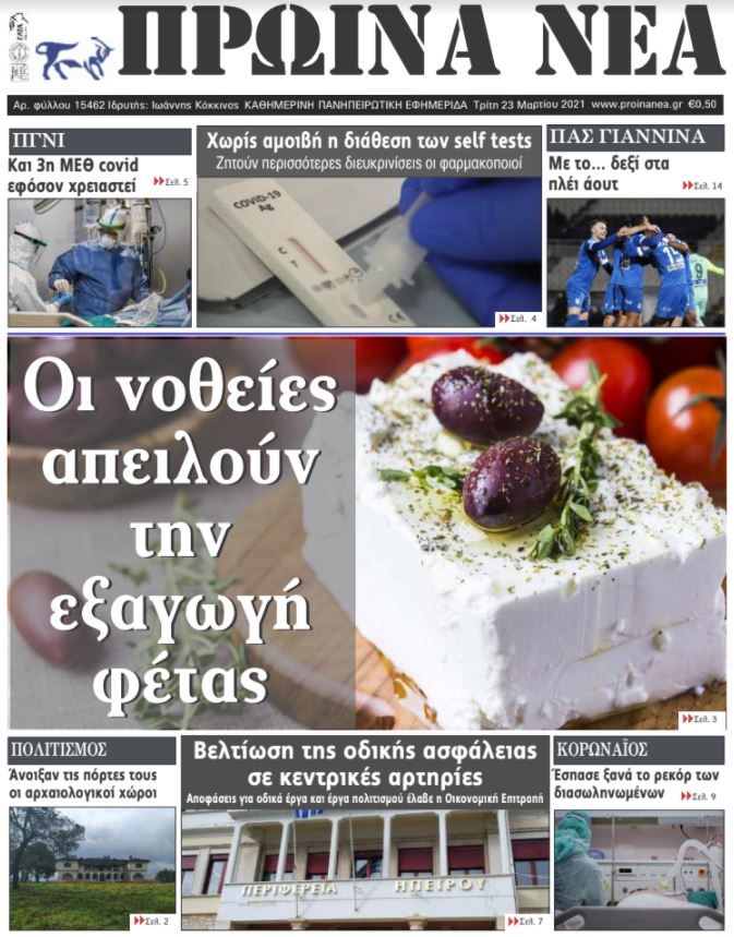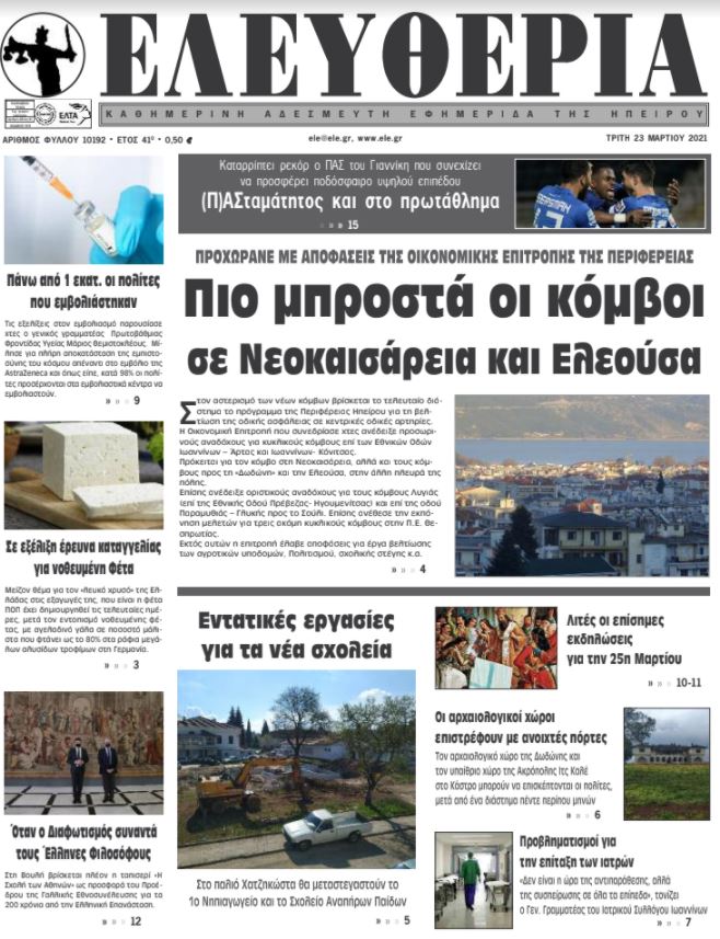 ΑρχικήΕΙΔΗΣΕΙΣΗΠΕΙΡΟΣ ΗΠΕΙΡΟΣ Τα πρωτοσέλιδα των γιαννιώτικων εφημερίδων 23.03.2021 69 FacebookTwitterWhatsAppEmailΤυπώνωViber Διαβάστε στα πρωτοσέλιδα των γιαννιώτικων εφημερίδων της Τρίτης 23 Μαρτίου TagsΓΙΑΝΝΙΩΤΙΚΕΣ ΕΦΗΜΕΡΙΔΕΣΠΡΩΤΟΣΕΛΙΔΑ FacebookTwitterWhatsAppEmailΤυπώνωViber Προηγούμενο άρθρο«Άνοιξε» η πλατφόρμα για την απόκτηση Πιστοποιητικού Επάρκειας Γνώσεων για ΠολιτογράφησηΕπόμενο άρθροΠροβληματισμοί για την επίταξη των ιατρών ΣΧΕΤΙΚΑ ΑΡΘΡΑ Τα πρωτοσέλιδα των γιαννιώτικων εφημερίδων TOP STORIES 06.11.2025 Τα πρωτοσέλιδα των γιαννιώτικων εφημερίδων ΗΠΕΙΡΟΣ 05.11.2025 Τα πρωτοσέλιδα των γιαννιώτικων εφημερίδων ΗΠΕΙΡΟΣ 04.11.2025 Τα πρωτοσέλιδα των γιαννιώτικων εφημερίδων TOP STORIES 01.11.2025 Τα πρωτοσέλιδα των γιαννιώτικων εφημερίδων ΗΠΕΙΡΟΣ 31.10.2025 Τα πρωτοσέλιδα των γιαννιώτικων εφημερίδων ΗΠΕΙΡΟΣ 30.10.2025 ΣΤΗΝ ΙΔΙΑ ΚΑΤΗΓΟΡΙΑ Δύο ταυτοποιήσεις για κλοπές χρυσαφικών στην Άρτα ΗΠΕΙΡΟΣ 06.11.2025 Επιστροφή των εργαζομένων του «Γαλαξία» στις θέσεις τους ΗΠΕΙΡΟΣ 06.11.2025 Διαμαρτυρία των εργαζόμενων σε τουρισμό – επισιτισμό ΗΠΕΙΡΟΣ 06.11.2025 Καταγγελία της ΕΙΝΗ για τα «εντέλλεσθε» της 6ης ΥΠΕ ΗΠΕΙΡΟΣ 06.11.2025 Τα πρωτοσέλιδα των γιαννιώτικων εφημερίδων TOP STORIES 06.11.2025 «Άναψε πράσινο» για Σωφρονιστικό Κατάστημα στους Φιλιάτες ΗΠΕΙΡΟΣ 05.11.2025 ΜΗ ΧΑΣΕΤΕ Υπεγράφη συμφωνία Energean, ExxonMobil και Helleniq Energy για γεώτρηση υδρογονανθράκων στο Ιόνιο Τα πρωτοσέλιδα των γιαννιώτικων εφημερίδων «Άναψε πράσινο» για Σωφρονιστικό Κατάστημα στους Φιλιάτες 206 πυρκαγιές με 61.000 καμένα στρέμματα στην Ήπειρο Κινητοποιήσεις για τα ΕΛΤΑ σε Μέτσοβο – Καναλάκι ΔΗΜΟΦΙΛΗ Νέο πολυετές σχέδιο για τις φορολογικές διοικήσεις της Ε.Ε Βορίζια: Συνελήφθη ο 43χρονος που πυροβολούσε με καλάσνικοφ Ο μεγαλύτερος ιστός αράχνης στον κόσμο βρέθηκε σε θειούχο σπήλαιο στα σύνορα Ελλάδας – Αλβανίας Εκδήλωση στην Ήπειρο για την Ευρωπαϊκή Ημέρα Γλωσσών Τα πρωτοσέλιδα των γιαννιώτικων εφημερίδων