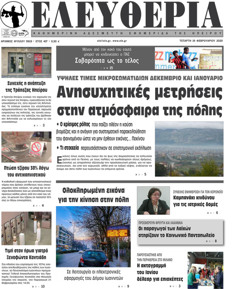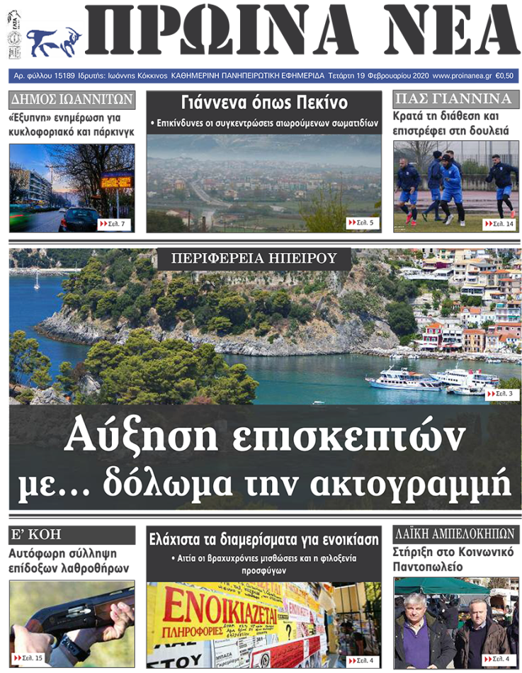 ΑρχικήΕΙΔΗΣΕΙΣΗΠΕΙΡΟΣ ΗΠΕΙΡΟΣ Τα πρωτοσέλιδα των γιαννιώτικων εφημερίδων 19.02.2020 233 FacebookTwitterWhatsAppEmailΤυπώνωViber Διαβάστε στα πρωτοσέλιδα των γιαννιώτικων εφημερίδων σήμερα, Τετάρτη 19 Φεβρουαρίου. TagsΓΙΑΝΝΙΩΤΙΚΕΣ ΕΦΗΜΕΡΙΔΕΣΠΡΩΤΟΣΕΛΙΔΑ FacebookTwitterWhatsAppEmailΤυπώνωViber Προηγούμενο άρθροΜεθυσμένοι στο τιμόνι οι Έλληνες οδηγοί- 14 παραβάσεις στην ΉπειροΕπόμενο άρθροΣτήριξη και ανάπτυξη για τα Βόρεια Τζουμέρκα ΣΧΕΤΙΚΑ ΑΡΘΡΑ Τα πρωτοσέλιδα των γιαννιώτικων εφημερίδων TOP STORIES 28.10.2025 Τα πρωτοσέλιδα των γιαννιώτικων εφημερίδων ΗΠΕΙΡΟΣ 25.10.2025 Τα πρωτοσέλιδα των γιαννιώτικων εφημερίδων ΗΠΕΙΡΟΣ 24.10.2025 Τα πρωτοσέλιδα των γιαννιώτικων εφημερίδων ΗΠΕΙΡΟΣ 23.10.2025 Τα πρωτοσέλιδα των γιαννιώτικων εφημερίδων ΗΠΕΙΡΟΣ 22.10.2025 Τα πρωτοσέλιδα των γιαννιώτικων εφημερίδων ΗΠΕΙΡΟΣ 21.10.2025 ΣΤΗΝ ΙΔΙΑ ΚΑΤΗΓΟΡΙΑ Με λαμπρότητα η παρέλαση για την επέτειο του «ΟΧΙ» ΗΠΕΙΡΟΣ 28.10.2025 Οι εκδηλώσεις για την 28η Οκτωβρίου στα Ιωάννινα ΗΠΕΙΡΟΣ 28.10.2025 Τα πρωτοσέλιδα των γιαννιώτικων εφημερίδων TOP STORIES 28.10.2025 ΝΟΣΟΚΟΜΕΙΟ «ΧΑΤΖΗΚΩΣΤΑ» -Ενημέρωση για την πρόληψη του καρκίνου του μαστού ΗΠΕΙΡΟΣ 28.10.2025 Οι ήρωες πεσόντες που ακόμη περιμένουν… ΗΠΕΙΡΟΣ 27.10.2025 Νέες κινητοποιήσεις ενόψει για τους ΣΟΧ στην καθαριότητα του ΠΓΝΙ ΗΠΕΙΡΟΣ 27.10.2025 ΜΗ ΧΑΣΕΤΕ Με λαμπρότητα η παρέλαση για την επέτειο του «ΟΧΙ» Τα πρωτοσέλιδα των γιαννιώτικων εφημερίδων Οι ήρωες πεσόντες που ακόμη περιμένουν… Εντοπίστηκαν 193 κιλά κάνναβης σε εγκαταλελειμμένο όχημα Στο Σακελλαρικό δεν ξεχνούν τον ήρωα Ιωάννη Σακελλαρίου ΔΗΜΟΦΙΛΗ Τι ισχύει για τις οικοδομικές άδειες -Υπεγράφη το Προεδρικό Διάταγμα ΝΟΣΟΚΟΜΕΙΟ «ΧΑΤΖΗΚΩΣΤΑ» -Ενημέρωση για την πρόληψη του καρκίνου του μαστού Τα πρωτοσέλιδα των γιαννιώτικων εφημερίδων Τα του Καίσαρος… Με λαμπρότητα η παρέλαση για την επέτειο του «ΟΧΙ»