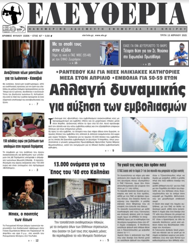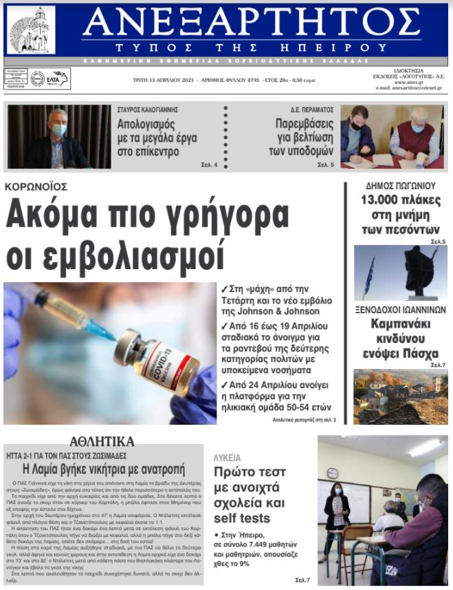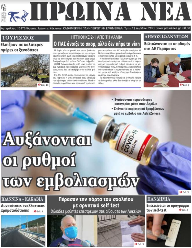 Διαβάστε στα πρωτοσέλιδα των γιαννιώτικων εφημερίδων της Τρίτης 13 Απριλίου