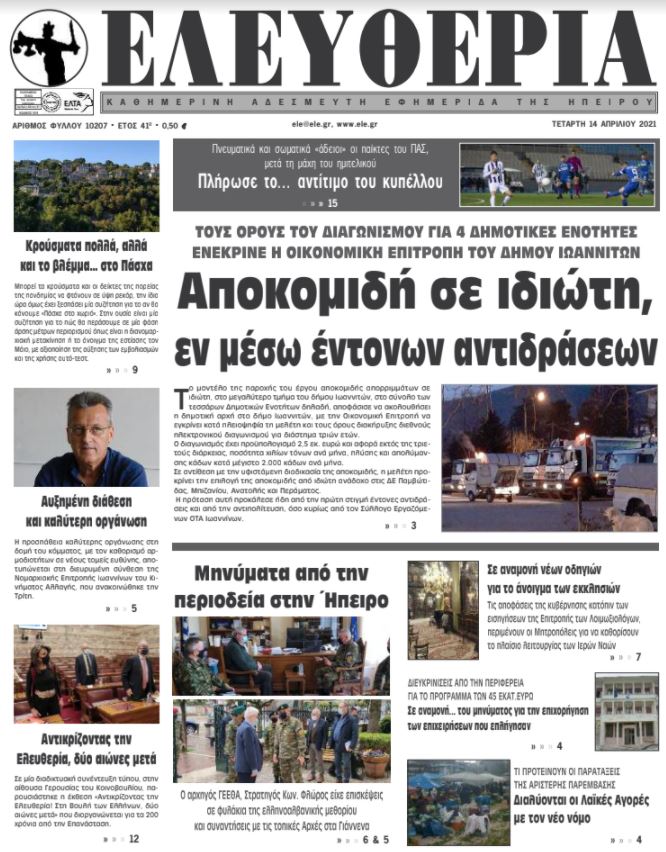 ΑρχικήΕΙΔΗΣΕΙΣΗΠΕΙΡΟΣ ΗΠΕΙΡΟΣ Τα πρωτοσέλιδα των γιαννιώτικων εφημερίδων 14.04.2021 69 FacebookTwitterWhatsAppEmailΤυπώνωViber Διαβάστε στα πρωτοσέλιδα των γιαννιώτικων εφημερίδων της Τετάρτης 14 Απριλίου TagsΓΙΑΝΝΙΩΤΙΚΕΣ ΕΦΗΜΕΡΙΔΕΣΠΡΩΤΟΣΕΛΙΔΑ FacebookTwitterWhatsAppEmailΤυπώνωViber Προηγούμενο άρθροΟλυμπιακοί Αγώνες: Το 72% των Ιαπώνων λέει «όχι» στη διεξαγωγή τουςΕπόμενο άρθροΝέα «καμπάνα» σε καφετέρια- 79 παραβάσεις των μέτρων στην Ήπειρο ΣΧΕΤΙΚΑ ΑΡΘΡΑ Τα πρωτοσέλιδα των γιαννιώτικων εφημερίδων TOP STORIES 28.10.2025 Τα πρωτοσέλιδα των γιαννιώτικων εφημερίδων ΗΠΕΙΡΟΣ 25.10.2025 Τα πρωτοσέλιδα των γιαννιώτικων εφημερίδων ΗΠΕΙΡΟΣ 24.10.2025 Τα πρωτοσέλιδα των γιαννιώτικων εφημερίδων ΗΠΕΙΡΟΣ 23.10.2025 Τα πρωτοσέλιδα των γιαννιώτικων εφημερίδων ΗΠΕΙΡΟΣ 22.10.2025 Τα πρωτοσέλιδα των γιαννιώτικων εφημερίδων ΗΠΕΙΡΟΣ 21.10.2025 ΣΤΗΝ ΙΔΙΑ ΚΑΤΗΓΟΡΙΑ «ΚΑΛΠΑΚΙΑ 2025»: Εδώ όπου η Ιστορία Ανασαίνει ΗΠΕΙΡΟΣ 29.10.2025 Απόβλητα από την Κέρκυρα ενταφιάζονταν στην Ήπειρο – Τρεις συλλήψεις, δώδεκα άτομα καταζητούνται ΗΠΕΙΡΟΣ 29.10.2025 Ηγουμενίτσα: Συνελήφθη αλλοδαπός που μετέφερε παράτυπο μετανάστη ΗΠΕΙΡΟΣ 29.10.2025 Με λαμπρότητα η παρέλαση για την επέτειο του «ΟΧΙ» ΗΠΕΙΡΟΣ 28.10.2025 Οι εκδηλώσεις για την 28η Οκτωβρίου στα Ιωάννινα ΗΠΕΙΡΟΣ 28.10.2025 Τα πρωτοσέλιδα των γιαννιώτικων εφημερίδων TOP STORIES 28.10.2025 ΜΗ ΧΑΣΕΤΕ Απόβλητα από την Κέρκυρα ενταφιάζονταν στην Ήπειρο – Τρεις συλλήψεις, δώδεκα άτομα καταζητούνται Με λαμπρότητα η παρέλαση για την επέτειο του «ΟΧΙ» Τα πρωτοσέλιδα των γιαννιώτικων εφημερίδων Οι ήρωες πεσόντες που ακόμη περιμένουν… Εντοπίστηκαν 193 κιλά κάνναβης σε εγκαταλελειμμένο όχημα ΔΗΜΟΦΙΛΗ Τυφώνας Μελίσα: Ενισχύθηκε σε κατηγορία 4 και κατευθύνεται στην Κούβα Απόβλητα από την Κέρκυρα ενταφιάζονταν στην Ήπειρο – Τρεις συλλήψεις, δώδεκα άτομα καταζητούνται «ΚΑΛΠΑΚΙΑ 2025»: Εδώ όπου η Ιστορία Ανασαίνει Ηγουμενίτσα: Συνελήφθη αλλοδαπός που μετέφερε παράτυπο μετανάστη Το νέο μισθολόγιο αστυνομικών, πυροσβεστών και λιμενικών