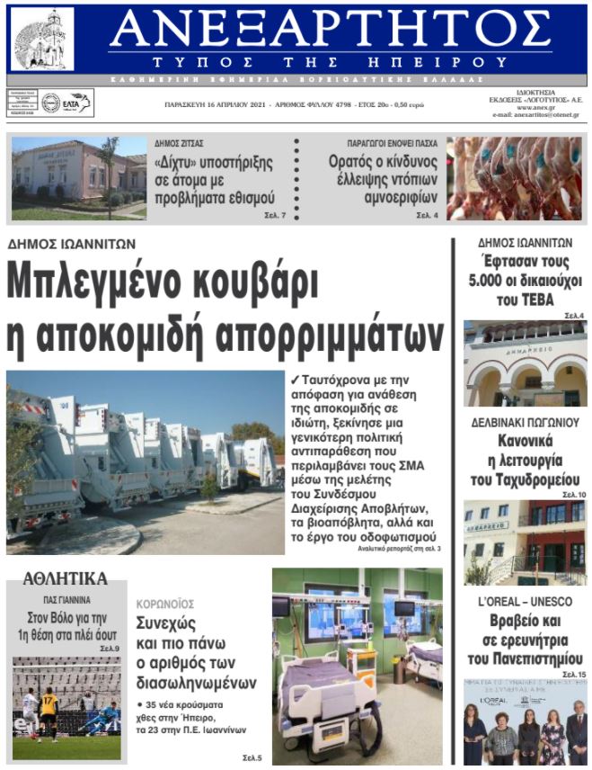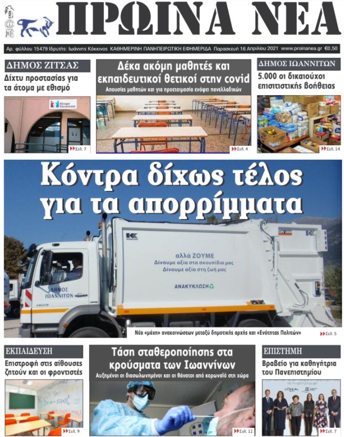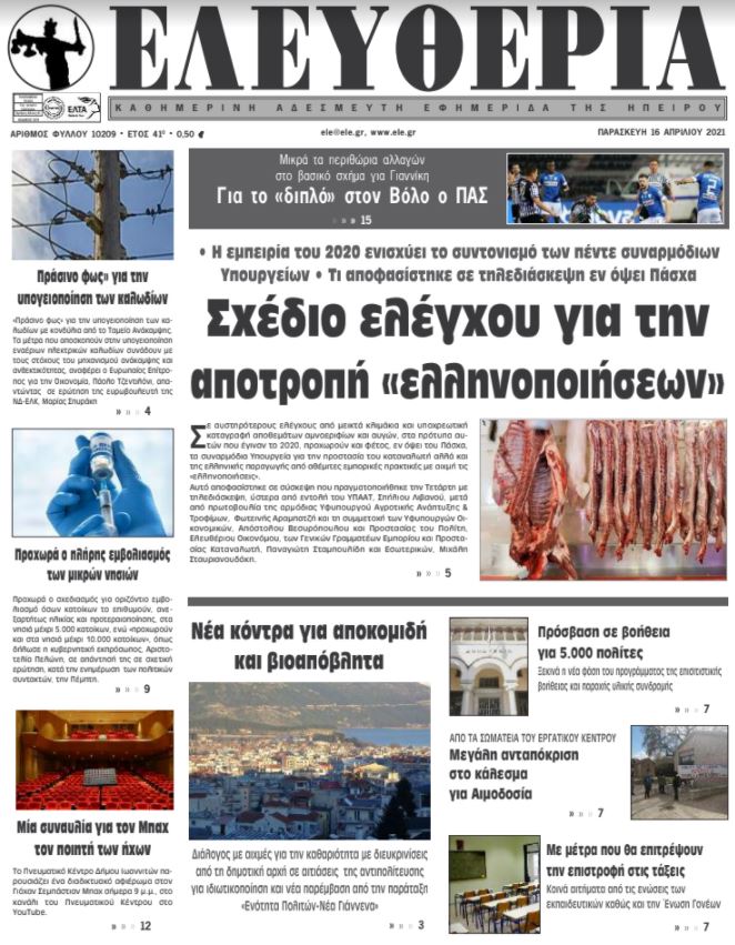 ΑρχικήΕΙΔΗΣΕΙΣΗΠΕΙΡΟΣ ΗΠΕΙΡΟΣ Τα πρωτοσέλιδα των γιαννιώτικων εφημερίδων 16.04.2021 67 FacebookTwitterWhatsAppEmailΤυπώνωViber Διαβάστε στα πρωτοσέλιδα των γιαννιώτικων εφημερίδων της Παρασκευής 16 Απριλίου TagsΓΙΑΝΝΙΩΤΙΚΕΣ ΕΦΗΜΕΡΙΔΕΣΠΡΩΤΟΣΕΛΙΔΑ FacebookTwitterWhatsAppEmailΤυπώνωViber Προηγούμενο άρθροΜπουρλά: Πιθανόν να χρειάζεται και τρίτος εμβολιασμός 6-12 μήνες μετά τη δεύτερη δόση του PfizerΕπόμενο άρθρο67 πρόστιμα για μάσκες και μετακινήσεις ΣΧΕΤΙΚΑ ΑΡΘΡΑ Τα πρωτοσέλιδα των γιαννιώτικων εφημερίδων TOP STORIES 12.12.2025 Τα πρωτοσέλιδα των γιαννιώτικων εφημερίδων ΗΠΕΙΡΟΣ 11.12.2025 Τα πρωτοσέλιδα των γιαννιώτικων εφημερίδων ΗΠΕΙΡΟΣ 10.12.2025 Τα πρωτοσέλιδα των γιαννιώτικων εφημερίδων ΗΠΕΙΡΟΣ 09.12.2025 Τα πρωτοσέλιδα των γιαννιώτικων εφημερίδων ΗΠΕΙΡΟΣ 06.12.2025 Τα πρωτοσέλιδα των γιαννιώτικων εφημερίδων ΗΠΕΙΡΟΣ 05.12.2025 ΣΤΗΝ ΙΔΙΑ ΚΑΤΗΓΟΡΙΑ Ζητούνται άμεσες λύσεις για την αιθαλομίχλη – Συνεχίζεται η σιωπή του ΥΠΕΝ ΗΠΕΙΡΟΣ 12.12.2025 Μπέγκας: Άμεση ενεργοποίηση μέτρων κατά της αιθαλομίχλης – Η πόλη δεν μπορεί να περιμένει ΗΠΕΙΡΟΣ 12.12.2025 Παρέμβαση του Δήμου Β. Τζουμέρκων για το νέο θεσμικό πλαίσιο περί κοινωφελών περιουσιών και κληροδοτημάτων ΗΠΕΙΡΟΣ 12.12.2025 Έκθεση αρχιτεκτονικών προτάσεων για τη Δημοτική Αγορά Αγ. Μαρίνας ΗΠΕΙΡΟΣ 12.12.2025 Γιορτή Υιοθεσίας Αδέσποτων Ζώων στο Πάρκο Λιθαρίτσια ΗΠΕΙΡΟΣ 12.12.2025 Τρόφιμα και είδη πρώτης ανάγκης για τα Παιδικά Χωριά SOS ΗΠΕΙΡΟΣ 12.12.2025 ΜΗ ΧΑΣΕΤΕ Μητσοτάκης: Τη Δευτέρα περιμένω στο γραφείο μου αντιπροσωπεία αγροτών Μπέγκας: Άμεση ενεργοποίηση μέτρων κατά της αιθαλομίχλης – Η πόλη δεν μπορεί να περιμένει Έκθεση αρχιτεκτονικών προτάσεων για τη Δημοτική Αγορά Αγ. Μαρίνας Συντάξεις Ιανουαρίου: Από τις 19 Δεκεμβρίου ξεκινά η καταβολή τους «Μέρα με τη νύχτα» το παραλίμνιο οδικό δίκτυο ΔΗΜΟΦΙΛΗ Πλημμύρες και απόγνωση στη Γάζα – Οι κάτοικοι περιμένουν το επόμενο βήμα του ειρηνευτικού σχεδίου Μητσοτάκης: Τη Δευτέρα περιμένω στο γραφείο μου αντιπροσωπεία αγροτών Παρουσίαση του έργου αποκατάστασης και ανάδειξης του Οθωμανικού Λουτρού στο Κάστρο Συνελήφθη αγρότισσα που προέτρεπε σε επιθέσεις κατά προσώπων «Περιβάλλον – Κυνήγι, μύθοι και αλήθειες» από το Δασολογικό συνέδριο
