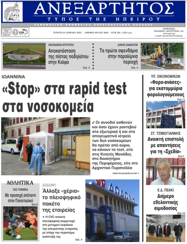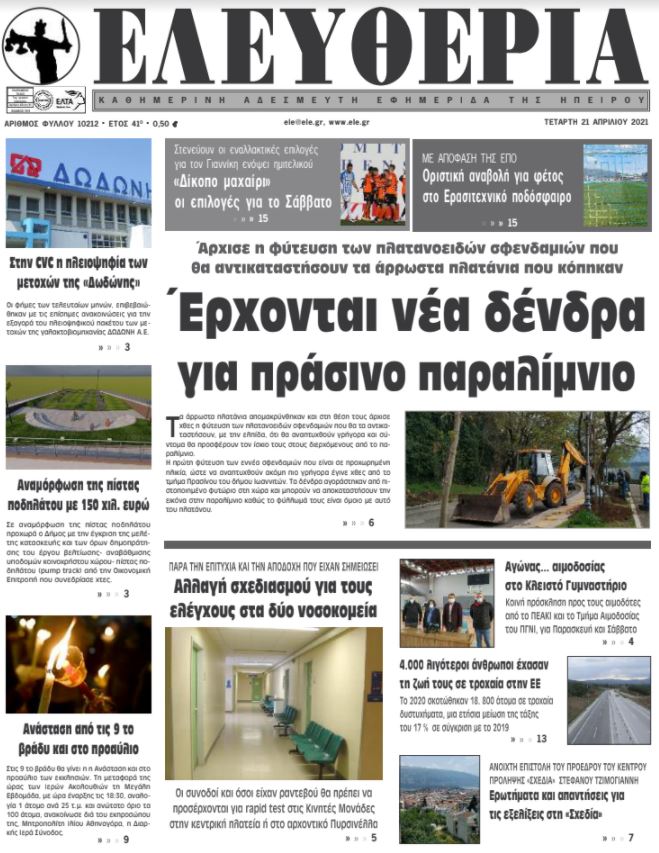 ΑρχικήTOP STORIES TOP STORIESΗΠΕΙΡΟΣ Τα πρωτοσέλιδα των γιαννιώτικων εφημερίδων 21.04.2021 73 FacebookTwitterWhatsAppEmailΤυπώνωViber Διαβάστε στα πρωτοσέλιδα των γιαννιώτικων εφημερίδων της Τετάρτης 21 Απριλίου TagsΓΙΑΝΝΙΩΤΙΚΕΣ ΕΦΗΜΕΡΙΔΕΣΠΡΩΤΟΣΕΛΙΔΑ FacebookTwitterWhatsAppEmailΤυπώνωViber Προηγούμενο άρθροΑκολουθούν την Τσέλσι στην έξοδο από την ESL Μάντσεστερ Σίτι και ΑτλέτικοΕπόμενο άρθροΑλλαγή σχεδιασμού για τους ελέγχους στα δύο νοσοκομεία ΣΧΕΤΙΚΑ ΑΡΘΡΑ Τα πρωτοσέλιδα των γιαννιώτικων εφημερίδων ΗΠΕΙΡΟΣ 04.11.2025 Τα πρωτοσέλιδα των γιαννιώτικων εφημερίδων TOP STORIES 01.11.2025 Τα πρωτοσέλιδα των γιαννιώτικων εφημερίδων ΗΠΕΙΡΟΣ 31.10.2025 Τα πρωτοσέλιδα των γιαννιώτικων εφημερίδων ΗΠΕΙΡΟΣ 30.10.2025 Τα πρωτοσέλιδα των γιαννιώτικων εφημερίδων ΗΠΕΙΡΟΣ 28.10.2025 Τα πρωτοσέλιδα των γιαννιώτικων εφημερίδων ΗΠΕΙΡΟΣ 25.10.2025 ΣΤΗΝ ΙΔΙΑ ΚΑΤΗΓΟΡΙΑ Η ΠΕΝΤΕ Α.Ε. απαντά στις καταγγελίες και υπερασπίζεται τη διαφάνεια στη συμφωνία με την «ΠΑΠΑΓΕΩΡΓΙΟΥ» ΗΠΕΙΡΟΣ 04.11.2025 Νέα δημοτική αγορά και παρεμβάσεις αναβάθμισης στην Αγία Μαρίνα ΗΠΕΙΡΟΣ 04.11.2025 Συμβολικές κινητοποιήσεις σε Μέτσοβο και Πωγώνι για τα καταστήματα ΕΛΤΑ ΗΠΕΙΡΟΣ 04.11.2025 Κινητοποίηση για τη διατήρηση του καταστήματος των ΕΛΤΑ Πραμάντων ΗΠΕΙΡΟΣ 04.11.2025 Κανένα θανατηφόρο τροχαίο φέτος τον Οκτώβριο TOP STORIES 04.11.2025 Εξιχνιάστηκε κλοπή από επιχείρηση στην Πρέβεζα ΗΠΕΙΡΟΣ 04.11.2025 ΜΗ ΧΑΣΕΤΕ Νέα δημοτική αγορά και παρεμβάσεις αναβάθμισης στην Αγία Μαρίνα Κανένα θανατηφόρο τροχαίο φέτος τον Οκτώβριο Ανοίγει η πλατφόρμα για το επίδομα θέρμανσης ΕΛΤΑ – Τρίμηνη αναστολή και κινητοποιήσεις στην Ήπειρο Εισαγγελική εντολή για την άμεση απομάκρυνση αποβλήτων ΔΗΜΟΦΙΛΗ 57χρονος μοτοσικλετιστής έχασε τη ζωή του μετά από σύγκρουση με αγριόχοιρο Πορτοκαλί προειδοποίηση από την ΕΜΥ: Πού θα χτυπήσει η κακοκαιρία Συλλήψεις φυγοποίνων στην Ήπειρο Η Κίμπερλι Γκιλφόιλ υπέβαλε τα διαπιστευτήριά της στον Πρόεδρο της Δημοκρατίας Εκδήλωση για τα παραδοσιακά επαγγέλματα της Ηπείρου στο Ευρωπαϊκό Κοινοβούλιο
