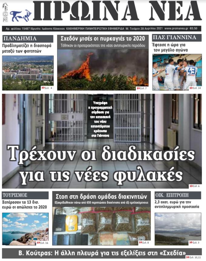 Διαβάστε στα πρωτοσέλιδα των γιαννιώτικων εφημερίδων της Τετάρτης 28 Απριλίου
