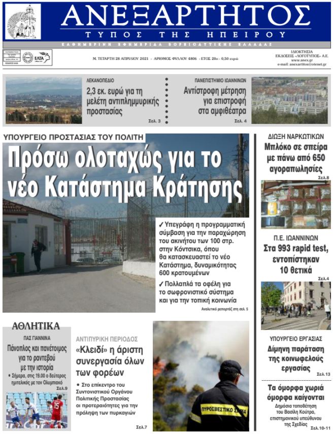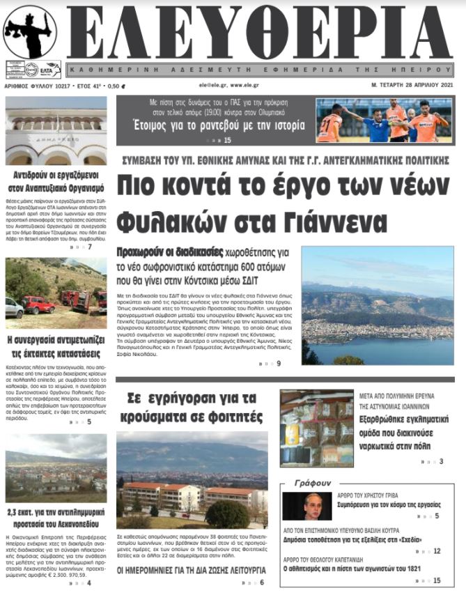 Διαβάστε στα πρωτοσέλιδα των γιαννιώτικων εφημερίδων της Τετάρτης 28 Απριλίου