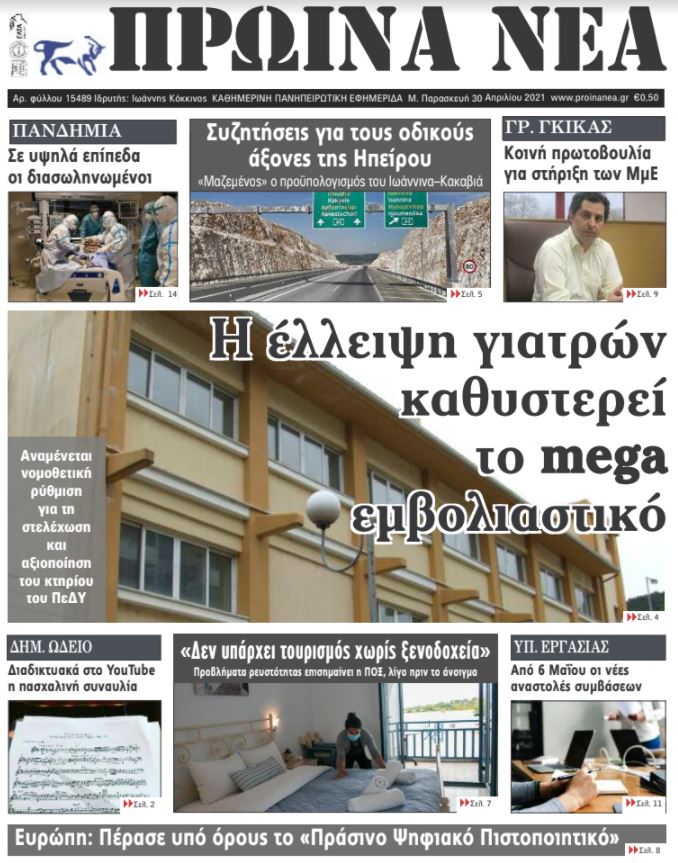Διαβάστε στα πρωτοσέλιδα των γιαννιώτικων εφημερίδων της Μ. Παρασκευής 30 Απριλίου