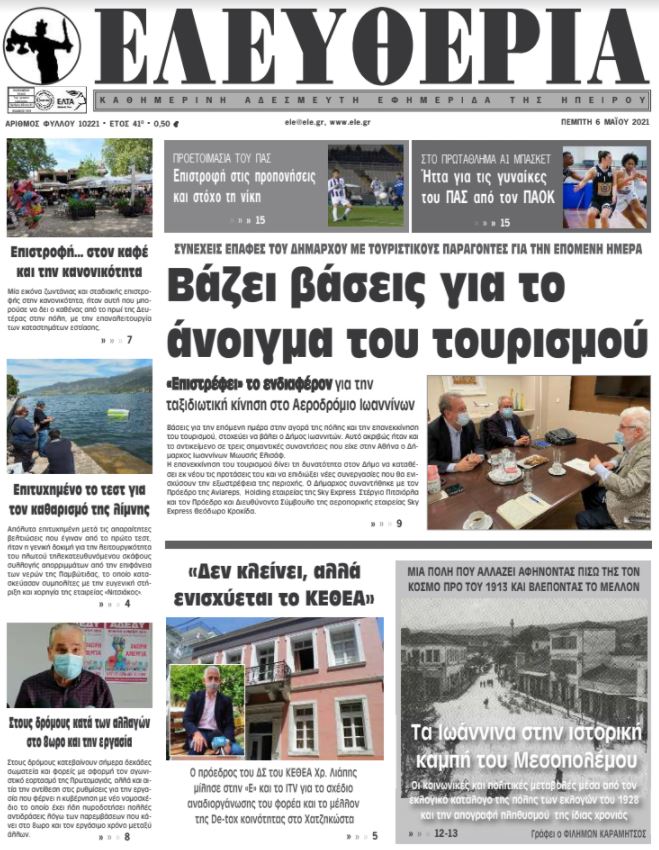 ΑρχικήΕΙΔΗΣΕΙΣΗΠΕΙΡΟΣ ΗΠΕΙΡΟΣ Τα πρωτοσέλιδα των γιαννιώτικων εφημερίδων 06.05.2021 114 FacebookTwitterWhatsAppEmailΤυπώνωViber Διαβάστε στα πρωτοσέλιδα των γιαννιώτικων εφημερίδων της Πέμπτης 6 Μαΐου TagsΓΙΑΝΝΙΩΤΙΚΕΣ ΕΦΗΜΕΡΙΔΕΣΠΡΩΤΟΣΕΛΙΔΑ FacebookTwitterWhatsAppEmailΤυπώνωViber Προηγούμενο άρθροΣτ. Πέτσας: 16,9 εκατ. ευρώ σε 326 Δήμους για δράσεις πυροπροστασίαςΕπόμενο άρθροΤα Ιωάννινα στην ιστορική καμπή του Μεσοπολέμου ΣΧΕΤΙΚΑ ΑΡΘΡΑ Τα πρωτοσέλιδα των γιαννιώτικων εφημερίδων ΗΠΕΙΡΟΣ 05.11.2025 Τα πρωτοσέλιδα των γιαννιώτικων εφημερίδων ΗΠΕΙΡΟΣ 04.11.2025 Τα πρωτοσέλιδα των γιαννιώτικων εφημερίδων TOP STORIES 01.11.2025 Τα πρωτοσέλιδα των γιαννιώτικων εφημερίδων ΗΠΕΙΡΟΣ 31.10.2025 Τα πρωτοσέλιδα των γιαννιώτικων εφημερίδων ΗΠΕΙΡΟΣ 30.10.2025 Τα πρωτοσέλιδα των γιαννιώτικων εφημερίδων ΗΠΕΙΡΟΣ 28.10.2025 ΣΤΗΝ ΙΔΙΑ ΚΑΤΗΓΟΡΙΑ 206 πυρκαγιές με 61.000 καμένα στρέμματα στην Ήπειρο ΗΠΕΙΡΟΣ 05.11.2025 Κινητοποιήσεις για τα ΕΛΤΑ σε Μέτσοβο – Καναλάκι TOP STORIES 05.11.2025 Αντιπαράθεση στη Ζίτσα για τη στάση της αντιπολίτευσης στο Δημοτικό Συμβούλιο ΗΠΕΙΡΟΣ 05.11.2025 Δήμος Ζίτσας: Απόφαση σταθμός της δημοτική αρχής για τη συνέχιση της λειτουργίας των ΕΛ.ΤΑ. ΗΠΕΙΡΟΣ 05.11.2025 Τμηματική διακοπή κυκλοφορίας στην 28ης Οκτωβρίου λόγω εργασιών διαγράμμισης ΗΠΕΙΡΟΣ 05.11.2025 Συνελήφθη αλλοδαπός στα Ιωάννινα για παράνομη κατοχή μαχαιριού ΗΠΕΙΡΟΣ 05.11.2025 ΜΗ ΧΑΣΕΤΕ 206 πυρκαγιές με 61.000 καμένα στρέμματα στην Ήπειρο Κινητοποιήσεις για τα ΕΛΤΑ σε Μέτσοβο – Καναλάκι Δήμος Ζίτσας: Απόφαση σταθμός της δημοτική αρχής για τη συνέχιση της λειτουργίας των ΕΛ.ΤΑ. Προτάσεις του ΤΕΕ για τη συνέχιση της λειτουργίας και των έργων της Εγνατίας Στα όριά του το ΠΓΝΙ με σχεδόν 500.000 ασθενείς μέσα στο 2025 ΔΗΜΟΦΙΛΗ 3ο Πανελλήνιο Συμπόσιο Ανόργανης Χημείας στο Πανεπιστήμιο Ιωαννίνων ΟΠΕΚΕΠΕ: Το σχέδιο για τον εκσυγχρονισμό των επιδοτήσεων Κινητοποιήσεις για τα ΕΛΤΑ σε Μέτσοβο – Καναλάκι Προσωπικός Αριθμός: Εκπνέει σήμερα η προθεσμία – Αυτόματη απόδοση από αύριο Αντιπαράθεση στην Ολομέλεια της Βουλής για τα ΕΛΤΑ