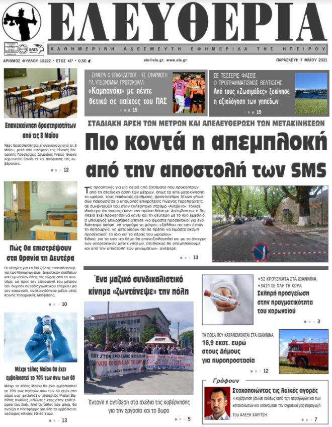 ΑρχικήTOP STORIES TOP STORIESΗΠΕΙΡΟΣ Τα πρωτοσέλιδα των γιαννιώτικων εφημερίδων 07.05.2021 118 FacebookTwitterWhatsAppEmailΤυπώνωViber Διαβάστε στα πρωτοσέλιδα των γιαννιώτικων εφημερίδων της Παρασκευής 7 Μαΐου TagsΓΙΑΝΝΙΩΤΙΚΕΣ ΕΦΗΜΕΡΙΔΕΣΠΡΩΤΟΣΕΛΙΔΑ FacebookTwitterWhatsAppEmailΤυπώνωViber Προηγούμενο άρθροΌλα της φορολογίας δύσκολα…Επόμενο άρθροΜέχρι τέλος Μαΐου θα έχει εμβολιαστεί το 70% των άνω των 60 ΣΧΕΤΙΚΑ ΑΡΘΡΑ Τα πρωτοσέλιδα των γιαννιώτικων εφημερίδων TOP STORIES 20.11.2025 Τα πρωτοσέλιδα των γιαννιώτικων εφημερίδων ΗΠΕΙΡΟΣ 19.11.2025 Τα πρωτοσέλιδα των γιαννιώτικων εφημερίδων ΗΠΕΙΡΟΣ 18.11.2025 Τα πρωτοσέλιδα των γιαννιώτικων εφημερίδων ΗΠΕΙΡΟΣ 15.11.2025 Τα πρωτοσέλιδα των γιαννιώτικων εφημερίδων ΗΠΕΙΡΟΣ 14.11.2025 Τα πρωτοσέλιδα των γιαννιώτικων εφημερίδων ΗΠΕΙΡΟΣ 13.11.2025 ΣΤΗΝ ΙΔΙΑ ΚΑΤΗΓΟΡΙΑ Ανακοινώθηκε η ολοκλήρωση της εξαγοράς της Γαλακτοβιομηχανίας «ΔΩΔΩΝΗ» ΗΠΕΙΡΟΣ 20.11.2025 Ένταση στο Δημοτικό Συμβούλιο για τη μετατόπιση περιπτέρου στην κεντρική πλατεία ΗΠΕΙΡΟΣ 20.11.2025 Περιμένοντας λύση από την ελεγχόμενη στάθμευση ΗΠΕΙΡΟΣ 20.11.2025 Επικαλούνται τη συναίνεση, αλλά ενισχύουν τη σύγχυση ΗΠΕΙΡΟΣ 20.11.2025 Ζημιές από την κακοκαιρία στο Βαγκαλιάτι με πτώσεις δέντρων και κολώνας ΗΠΕΙΡΟΣ 20.11.2025 ΤΕΕ Ηπείρου: Αίτια, επιπτώσεις και στρατηγικές αντιμετώπισης της αιθαλομίχλης TOP STORIES 20.11.2025 ΜΗ ΧΑΣΕΤΕ Περιμένοντας λύση από την ελεγχόμενη στάθμευση Επικαλούνται τη συναίνεση, αλλά ενισχύουν τη σύγχυση ΤΕΕ Ηπείρου: Αίτια, επιπτώσεις και στρατηγικές αντιμετώπισης της αιθαλομίχλης Έντονες βροχοπτώσεις στην Ήπειρο – Δεκάδες περιστατικά για την Πυροσβεστική Έκτακτο δελτίο επιδείνωσης από την ΕΜΥ – Εντείνονται οι καταιγίδες από τη νύχτα ΔΗΜΟΦΙΛΗ Ποινική δίωξη για επικίνδυνη οδήγηση στη Δήμητρα Ματσούκα Η Χαμάς κατηγορεί το Ισραήλ για «επικίνδυνη κλιμάκωση» που απειλεί την εκεχειρία Ένταση στο Δημοτικό Συμβούλιο για τη μετατόπιση περιπτέρου στην κεντρική πλατεία Επιστροφή ενοικίου: Ποιους αφορά και πώς υποβάλλονται τα δικαιολογητικά Κλήση 2.000 ευρώ και αφαίρεση διπλώματος για τον Στ. Τσιτσιπά