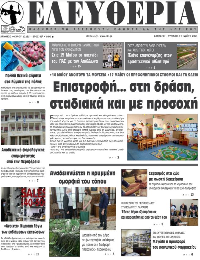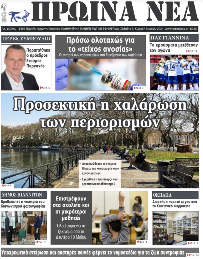 ΑρχικήΕΙΔΗΣΕΙΣΗΠΕΙΡΟΣ ΗΠΕΙΡΟΣ Τα πρωτοσέλιδα των γιαννιώτικων εφημερίδων 08.05.2021 76 FacebookTwitterWhatsAppEmailΤυπώνωViber Διαβάστε στα πρωτοσέλιδα των γιαννιώτικων εφημερίδων του Σαββατοκύριακου 8-9 Μαΐου TagsΓΙΑΝΝΙΩΤΙΚΕΣ ΕΦΗΜΕΡΙΔΕΣΠΡΩΤΟΣΕΛΙΔΑ FacebookTwitterWhatsAppEmailΤυπώνωViber Προηγούμενο άρθροΡωσία: Σκάνδαλο λαθραλιείας «δείχνουν» οι 170 νεκρές φώκιες στα παράλια της ΚασπίαςΕπόμενο άρθροΓιατροί των νοσοκομείων στη διενέργεια των τεστ ΣΧΕΤΙΚΑ ΑΡΘΡΑ Τα πρωτοσέλιδα των γιαννιώτικων εφημερίδων TOP STORIES 31.12.2025 Τα πρωτοσέλιδα των γιαννιώτικων εφημερίδων ΗΠΕΙΡΟΣ 30.12.2025 Τα πρωτοσέλιδα των γιαννιώτικων εφημερίδων ΗΠΕΙΡΟΣ 24.12.2025 Τα πρωτοσέλιδα των γιαννιώτικων εφημερίδων ΗΠΕΙΡΟΣ 23.12.2025 Τα πρωτοσέλιδα των γιαννιώτικων εφημερίδων ΗΠΕΙΡΟΣ 19.12.2025 Τα πρωτοσέλιδα των γιαννιώτικων εφημερίδων ΗΠΕΙΡΟΣ 18.12.2025 ΣΤΗΝ ΙΔΙΑ ΚΑΤΗΓΟΡΙΑ ΓΙΑΝΝΗΣ ΣΤΕΦΟΣ – Βολές κατά Καχριμάνη για τη «φωτογραφική» πρόσληψη ΗΠΕΙΡΟΣ 31.12.2025 Παράταση αγωνίας για τους αντιδημάρχους ΗΠΕΙΡΟΣ 31.12.2025 Πρωτοχρονιάτικα κάλαντα στο Δημαρχείο Ιωαννίνων ΗΠΕΙΡΟΣ 31.12.2025 Τα κάλαντα της Πρωτοχρονιάς στην Περιφέρεια Ηπείρου ΗΠΕΙΡΟΣ 31.12.2025 Νέες διαδρομές περιήγησης στον αρχαιολογικό χώρο της Νικόπολης ΗΠΕΙΡΟΣ 31.12.2025 Η παιδική χορωδία του Δήμου Ζίτσας έψαλλε τα πρωτοχρονιάτικα κάλαντα ΗΠΕΙΡΟΣ 31.12.2025 ΜΗ ΧΑΣΕΤΕ ΓΙΑΝΝΗΣ ΣΤΕΦΟΣ – Βολές κατά Καχριμάνη για τη «φωτογραφική» πρόσληψη Παράταση αγωνίας για τους αντιδημάρχους Νέες διαδρομές περιήγησης στον αρχαιολογικό χώρο της Νικόπολης Εγνατία Οδός: Αυξάνονται τα διόδια, καταργείται το EgnatiaPass Αυξήσεις στα διόδια από 1η Ιανουαρίου 2026 ΔΗΜΟΦΙΛΗ Το 2026 για την Ευρώπη: Εκλογές, Σύνοδοι και κρίσιμες νομοθετικές πρωτοβουλίες Γαλλία: Πρόταση για απαγόρευση των social media σε παιδιά κάτω των 15 ετών Οι ευρωπαϊκές αγορές κλείνουν το 2025 σε υψηλά επίπεδα Η αλλαγή του χρόνου «ταξιδεύει» από τον Ειρηνικό σε όλο τον κόσμο Ποιες φορολογικές υποχρεώσεις λήγουν σήμερα