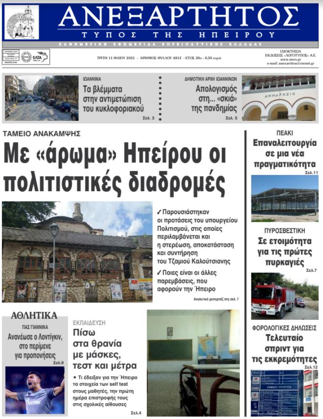 Διαβάστε στα πρωτοσέλιδα των γιαννιώτικων εφημερίδων της Τρίτης 11 Μαΐου