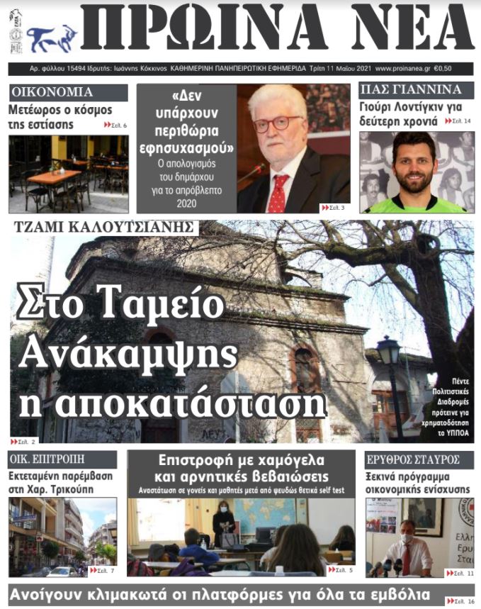 ΑρχικήΕΙΔΗΣΕΙΣΗΠΕΙΡΟΣ ΗΠΕΙΡΟΣ Τα πρωτοσέλιδα των γιαννιώτικων εφημερίδων 11.05.2021 99 FacebookTwitterWhatsAppEmailΤυπώνωViber Διαβάστε στα πρωτοσέλιδα των γιαννιώτικων εφημερίδων της Τρίτης 11 Μαΐου TagsΓΙΑΝΝΙΩΤΙΚΕΣ ΕΦΗΜΕΡΙΔΕΣΠΡΩΤΟΣΕΛΙΔΑ FacebookTwitterWhatsAppEmailΤυπώνωViber Προηγούμενο άρθροΠώς θα ταξιδεύουμε από 14 Μαΐου σε νησιά και ενδοχώρα-Ποιοι και πότε θα χρειάζονται αρνητικό τεστΕπόμενο άρθροΠαράταση έως 13 Μαΐου για το Κατασκηνωτικό Πρόγραμμα ΣΧΕΤΙΚΑ ΑΡΘΡΑ Τα πρωτοσέλιδα των γιαννιώτικων εφημερίδων TOP STORIES 21.11.2025 Τα πρωτοσέλιδα των γιαννιώτικων εφημερίδων TOP STORIES 20.11.2025 Τα πρωτοσέλιδα των γιαννιώτικων εφημερίδων ΗΠΕΙΡΟΣ 19.11.2025 Τα πρωτοσέλιδα των γιαννιώτικων εφημερίδων ΗΠΕΙΡΟΣ 18.11.2025 Τα πρωτοσέλιδα των γιαννιώτικων εφημερίδων ΗΠΕΙΡΟΣ 15.11.2025 Τα πρωτοσέλιδα των γιαννιώτικων εφημερίδων ΗΠΕΙΡΟΣ 14.11.2025 ΣΤΗΝ ΙΔΙΑ ΚΑΤΗΓΟΡΙΑ Προβλήματα στον οδοφωτισμό λόγω της κακοκαιρίας ΗΠΕΙΡΟΣ 21.11.2025 Σε κατάσταση έκτακτης ανάγκης ζητά να κηρυχθεί ο Δήμος Πωγωνίου ΗΠΕΙΡΟΣ 21.11.2025 Πλημμύρα στην Κοσμηρά – Ζημιές από την ισχυρή βροχόπτωση ΗΠΕΙΡΟΣ 21.11.2025 Σε πλήρη δράση η Πολιτική Προστασία Πωγωνίου ΗΠΕΙΡΟΣ 21.11.2025 Κατολισθήσεις στον Δήμο Βορ. Τζουμέρκων – Έκκληση για προσοχή ΗΠΕΙΡΟΣ 21.11.2025 Σοβαρές πλημμύρες από την υπερχείλιση του Καλαμά ΗΠΕΙΡΟΣ 21.11.2025 ΜΗ ΧΑΣΕΤΕ Βροχές ενάμιση μήνα μέσα σε 48 ώρες στην Ήπειρο Τα πρωτοσέλιδα των γιαννιώτικων εφημερίδων Ένταση για τη μετατόπιση περιπτέρου στην κεντρική πλατεία Περιμένοντας λύση από την ελεγχόμενη στάθμευση Επικαλούνται τη συναίνεση, αλλά ενισχύουν τη σύγχυση ΔΗΜΟΦΙΛΗ Εκδήλωση για τη βία κατά των γυναικών Τα του Καίσαρος… 21 Νοεμβρίου – Ημέρα των Ενόπλων Δυνάμεων Τα CDC συνδέουν πλέον τον αυτισμό με τα εμβόλια Πλημμύρα στην Κοσμηρά – Ζημιές από την ισχυρή βροχόπτωση