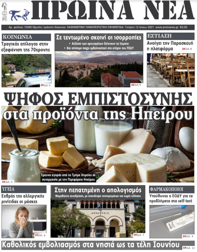 Διαβάστε στα πρωτοσέλιδα των γιαννιώτικων εφημερίδων της Τετάρτης 12 Μαΐου