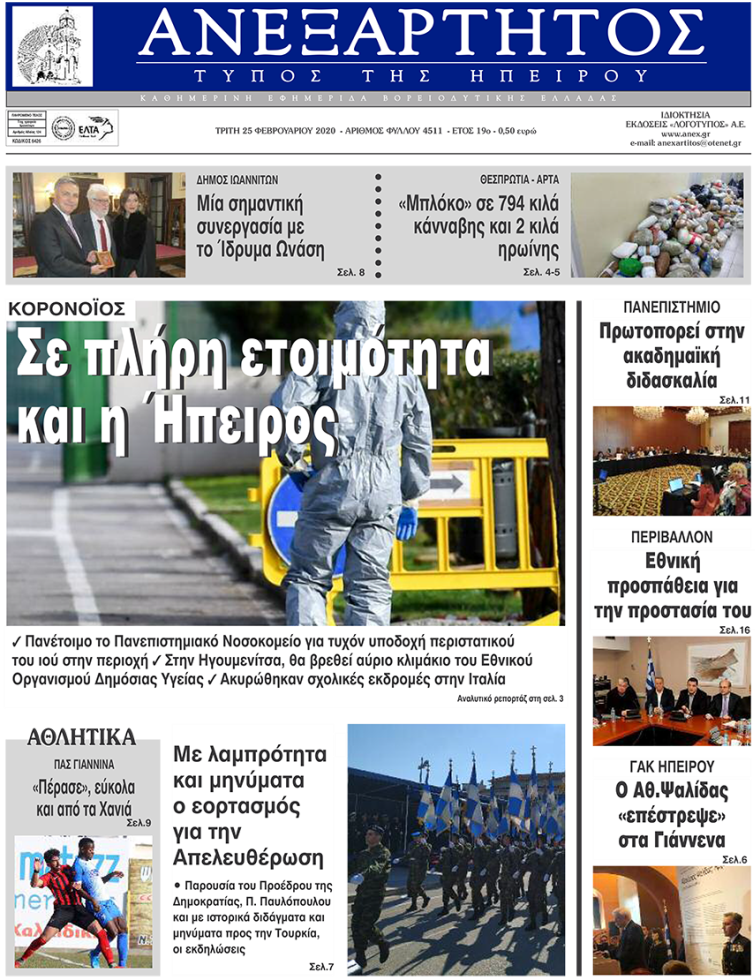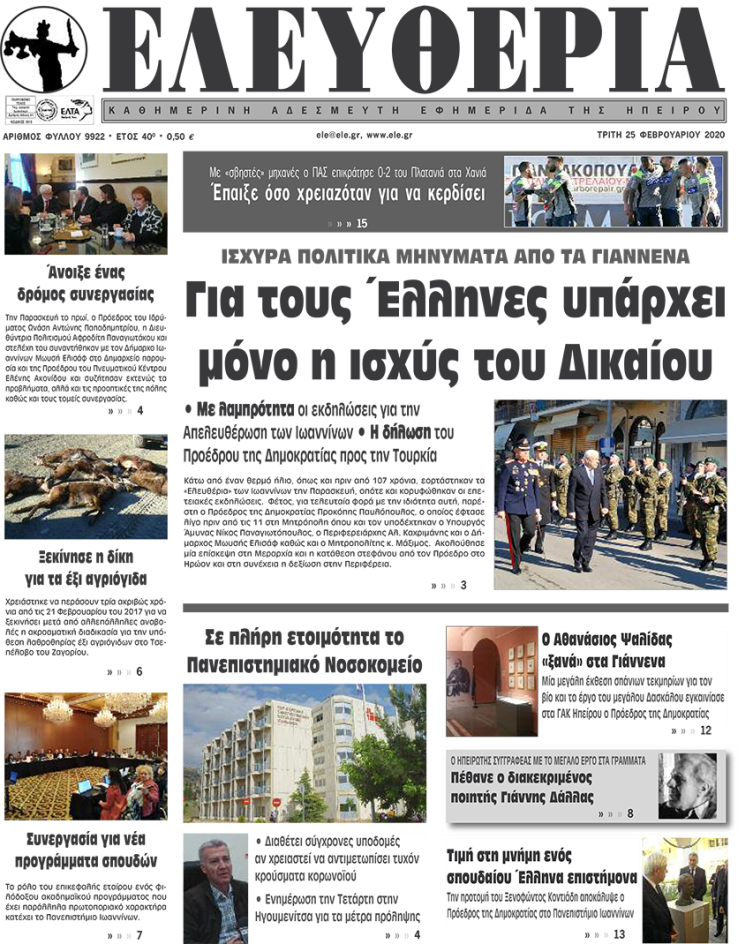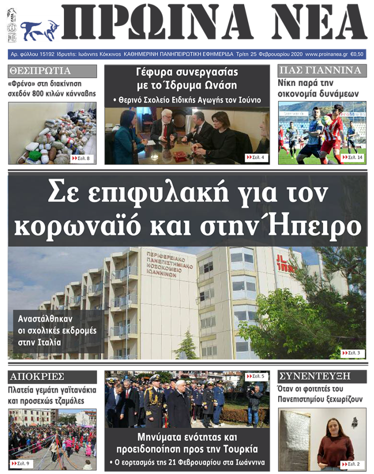 ΑρχικήΕΙΔΗΣΕΙΣΗΠΕΙΡΟΣ ΗΠΕΙΡΟΣ Τα πρωτοσέλιδα των γιαννιώτικων εφημερίδων 25.02.2020 236 FacebookTwitterWhatsAppEmailΤυπώνωViber Διαβάστε στα πρωτοσέλιδα των γιαννιώτικων εφημερίδων σήμερα, Τρίτη 25 Φεβρουαρίου. TagsΓΙΑΝΝΙΩΤΙΚΕΣ ΕΦΗΜΕΡΙΔΕΣΠΡΩΤΟΣΕΛΙΔΑ FacebookTwitterWhatsAppEmailΤυπώνωViber Προηγούμενο άρθροΆγνωστοι προσπάθησαν να ανατινάξουν ΑΤΜ στην ΑνατολήΕπόμενο άρθροΒ. Κικίλιας: «Να ακούτε μόνο τους ειδικούς για τον κορωνοϊό» ΣΧΕΤΙΚΑ ΑΡΘΡΑ Τα πρωτοσέλιδα των γιαννιώτικων εφημερίδων TOP STORIES 22.11.2025 Τα πρωτοσέλιδα των γιαννιώτικων εφημερίδων ΗΠΕΙΡΟΣ 21.11.2025 Τα πρωτοσέλιδα των γιαννιώτικων εφημερίδων TOP STORIES 20.11.2025 Τα πρωτοσέλιδα των γιαννιώτικων εφημερίδων ΗΠΕΙΡΟΣ 19.11.2025 Τα πρωτοσέλιδα των γιαννιώτικων εφημερίδων ΗΠΕΙΡΟΣ 18.11.2025 Τα πρωτοσέλιδα των γιαννιώτικων εφημερίδων ΗΠΕΙΡΟΣ 15.11.2025 ΣΤΗΝ ΙΔΙΑ ΚΑΤΗΓΟΡΙΑ Τροχαίο με δύο τραυματίες στην Καστρίτσα από εκτροπή ΙΧ ΗΠΕΙΡΟΣ 23.11.2025 Κλειστός ο δρόμος Παλαιοχωρίου–Συρράκου λόγω καθίζησης ΗΠΕΙΡΟΣ 23.11.2025 Τραγωδία στους Κιρκιζάτες με έναν νεκρό και μία γυναίκα σε νοσηλεία ΗΠΕΙΡΟΣ 23.11.2025 Βροχές, χιόνια και χαμηλές θερμοκρασίες στην Ήπειρο ΗΠΕΙΡΟΣ 23.11.2025 Ενθρονίστηκε στο Δελβινάκι ο νέος Μητροπολίτης Αλέξιος ΗΠΕΙΡΟΣ 23.11.2025 Καθιζήσεις, πλημμύρες και εκτεταμένες κατολισθήσεις στα Τζουμέρκα ΗΠΕΙΡΟΣ 23.11.2025 ΜΗ ΧΑΣΕΤΕ Βροχές, χιόνια και χαμηλές θερμοκρασίες στην Ήπειρο Ενθρονίστηκε στο Δελβινάκι ο νέος Μητροπολίτης Αλέξιος Καθιζήσεις, πλημμύρες και εκτεταμένες κατολισθήσεις στα Τζουμέρκα Ικανοποίηση για τη μείωση της ανεργίας Τα πρωτοσέλιδα των γιαννιώτικων εφημερίδων ΔΗΜΟΦΙΛΗ Ενθρονίστηκε στο Δελβινάκι ο νέος Μητροπολίτης Αλέξιος 81.651 αιτήσεις στο North Evia Pass 2025 Τραγωδία στους Κιρκιζάτες με έναν νεκρό και μία γυναίκα σε νοσηλεία Καθιζήσεις, πλημμύρες και εκτεταμένες κατολισθήσεις στα Τζουμέρκα Ο Γιώργος Στύλιος για το νομοσχέδιο για την ΕΡΤ
