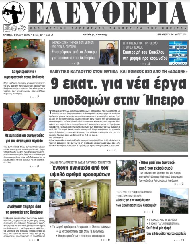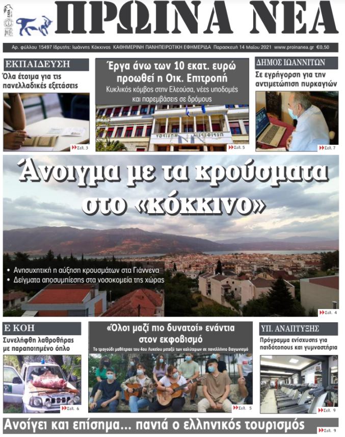 ΑρχικήΕΙΔΗΣΕΙΣΗΠΕΙΡΟΣ ΗΠΕΙΡΟΣ Τα πρωτοσέλιδα των γιαννιώτικων εφημερίδων 14.05.2021 118 FacebookTwitterWhatsAppEmailΤυπώνωViber Διαβάστε στα πρωτοσέλιδα των γιαννιώτικων εφημερίδων της Παρασκευής 14 Μαΐου TagsΓΙΑΝΝΙΩΤΙΚΕΣ ΕΦΗΜΕΡΙΔΕΣΠΡΩΤΟΣΕΛΙΔΑ FacebookTwitterWhatsAppEmailΤυπώνωViber Προηγούμενο άρθροΓιατί είμαστε «Όλοι μαζί πιο δυνατοί»Επόμενο άρθροΜοριακός έλεγχος υποχρεωτικά για κατάταξη ΣΧΕΤΙΚΑ ΑΡΘΡΑ Τα πρωτοσέλιδα των γιαννιώτικων εφημερίδων TOP STORIES 08.11.2025 Τα πρωτοσέλιδα των γιαννιώτικων εφημερίδων ΗΠΕΙΡΟΣ 07.11.2025 Τα πρωτοσέλιδα των γιαννιώτικων εφημερίδων ΗΠΕΙΡΟΣ 06.11.2025 Τα πρωτοσέλιδα των γιαννιώτικων εφημερίδων ΗΠΕΙΡΟΣ 05.11.2025 Τα πρωτοσέλιδα των γιαννιώτικων εφημερίδων ΗΠΕΙΡΟΣ 04.11.2025 Τα πρωτοσέλιδα των γιαννιώτικων εφημερίδων TOP STORIES 01.11.2025 ΣΤΗΝ ΙΔΙΑ ΚΑΤΗΓΟΡΙΑ Τα πρωτοσέλιδα των γιαννιώτικων εφημερίδων TOP STORIES 08.11.2025 Μαθητές του 5ου Γυμνασίου Ιωαννίνων στην κορυφή του Μιτσικελίου ΗΠΕΙΡΟΣ 07.11.2025 Επίτιμος Διδάκτορας του Τμήματος Φιλολογίας ο Γιώργος Κεχαγιόγλου ΗΠΕΙΡΟΣ 07.11.2025 Οι ναυαγοσωστικές δαπάνες «πνίγουν» τους δήμους ΗΠΕΙΡΟΣ 07.11.2025 Ενημερωτική ημερίδα στα Ιωάννινα για τη δωρεά και μεταμόσχευση οργάνων ΗΠΕΙΡΟΣ 07.11.2025 Εγκαίνια στο Κατάστημα Αναμνηστικών του Πανεπιστημίου Ιωαννίνων ΗΠΕΙΡΟΣ 07.11.2025 ΜΗ ΧΑΣΕΤΕ Τα πρωτοσέλιδα των γιαννιώτικων εφημερίδων Οι ναυαγοσωστικές δαπάνες «πνίγουν» τους δήμους Έκτακτο δελτίο επιδείνωσης από την ΕΜΥ – Πού θα βρέχει το επόμενο τριήμερο Μπαλωθιές τέλος στην Κρήτη – Τα μέτρα για την παράνομη οπλοκατοχή Χωρίς πινακίδες παραμένουν χιλιάδες δίκυκλα ΔΗΜΟΦΙΛΗ Τα του Καίσαρος… Τα πρωτοσέλιδα των γιαννιώτικων εφημερίδων Κατέρρευσε στο β’ ημίχρονο ο ΠΑΣ απέναντι στον Ηρακλή Ιταλία: Αυξάνονται οι αιωνόβιοι στη χώρα -2.000 περισσότεροι σε σχέση με πέρυσι ΤΗΝ ΔΕΥΤΕΡΑ -Νομαρχιακή Συνδιάσκεψη του ΣΥΡΙΖΑ ΠΣ Ιωαννίνων