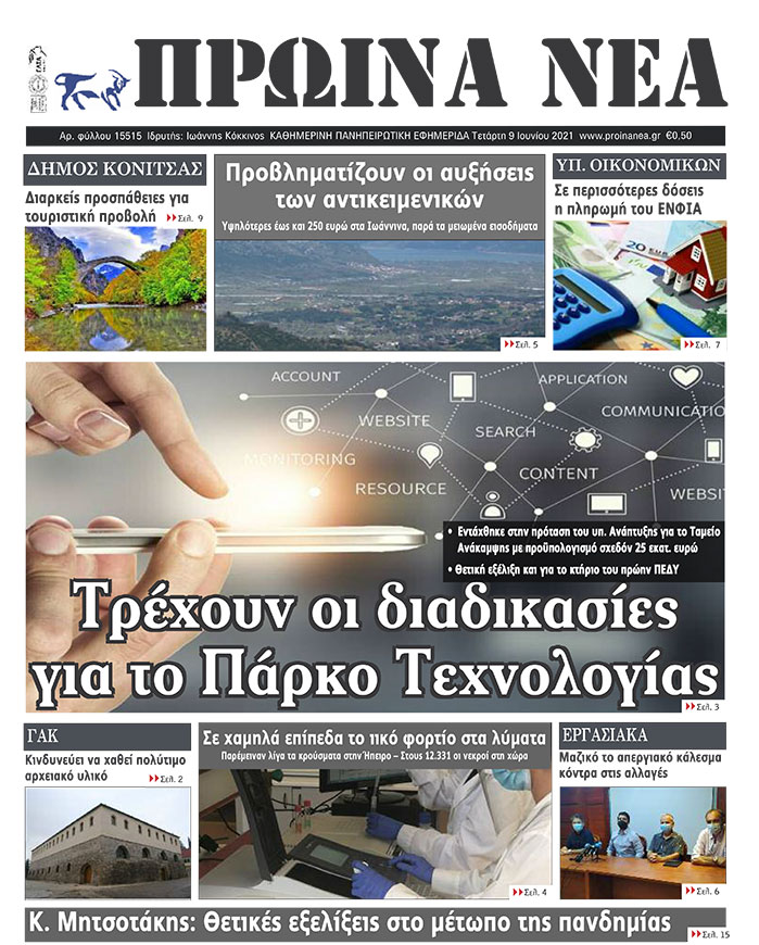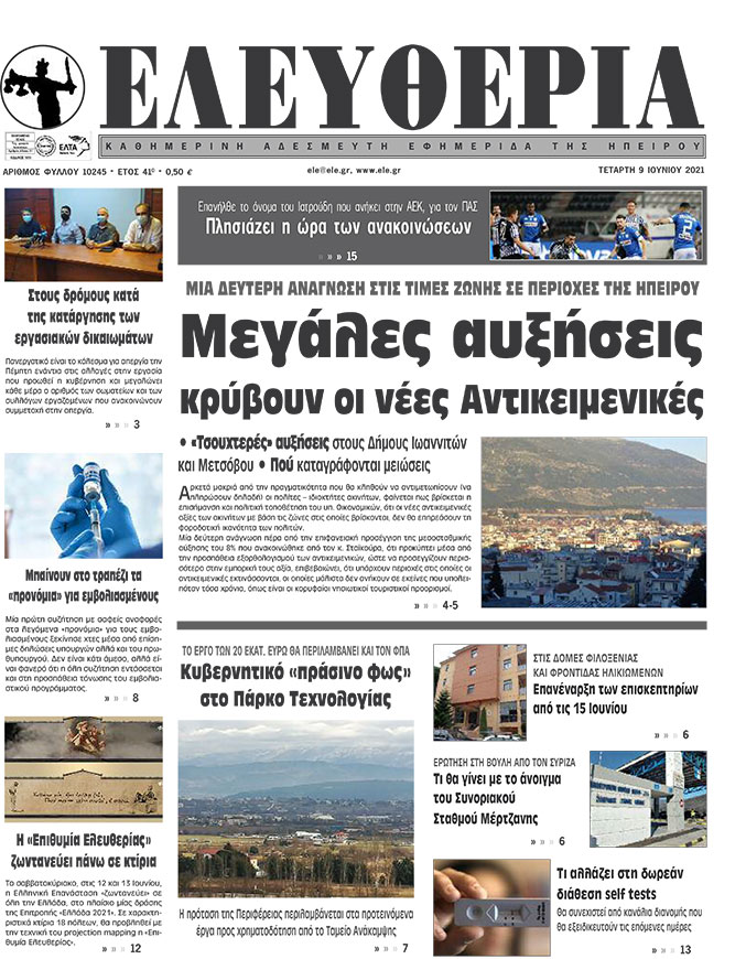 Διαβάστε στα πρωτοσέλιδα των γιαννιώτικων εφημερίδων της Τετάρτης 9 Ιουνίου