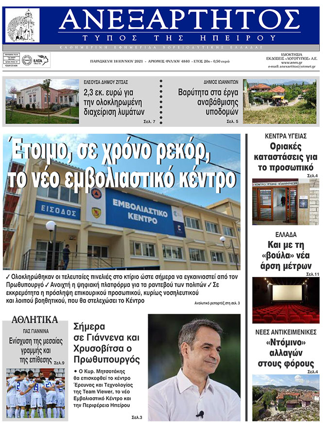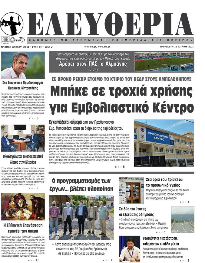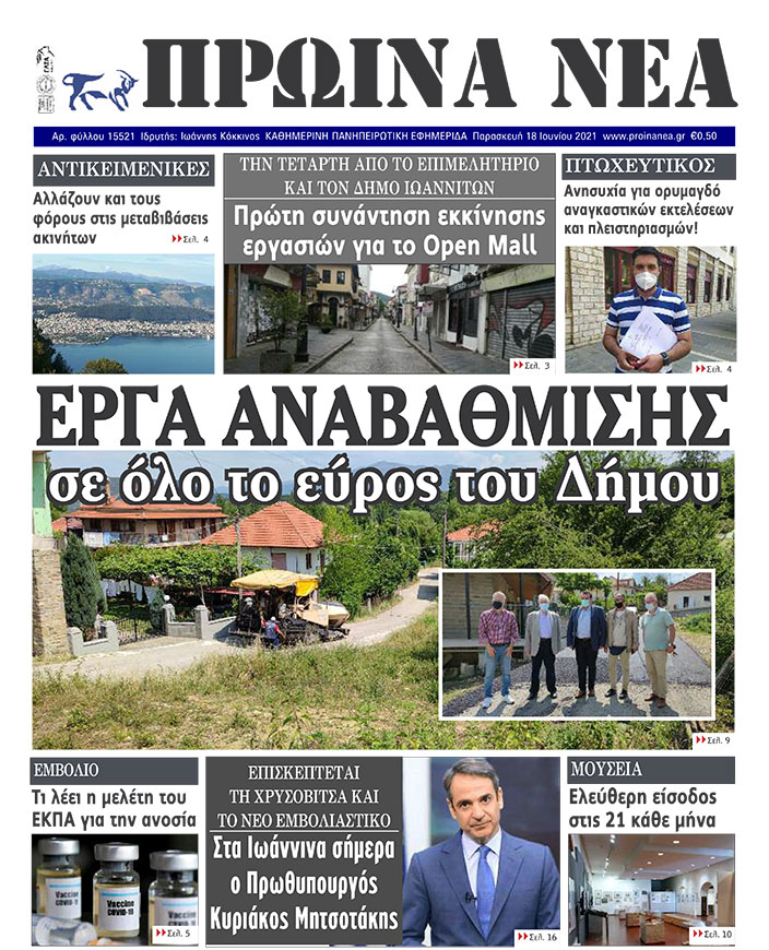 Διαβάστε στα πρωτοσέλιδα των γιαννιώτικων εφημερίδων της Παρασκευής 18 Ιουνίου