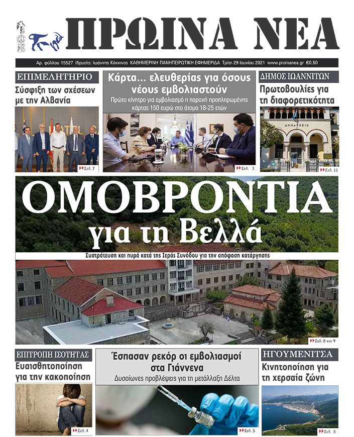 Διαβάστε στα πρωτοσέλιδα των γιαννιώτικων εφημερίδων της Τρίτης 29 Ιουνίου