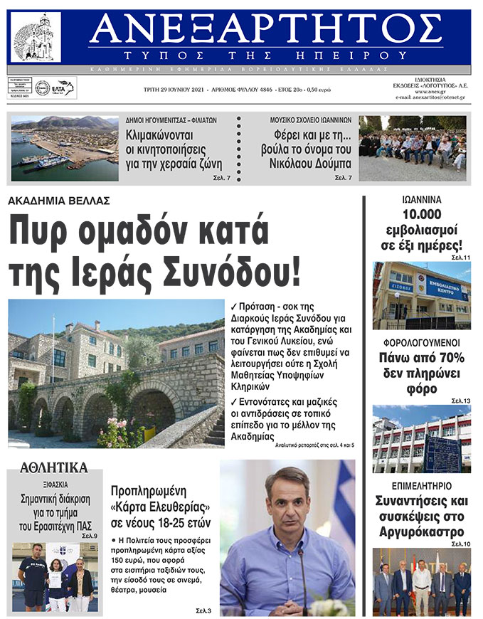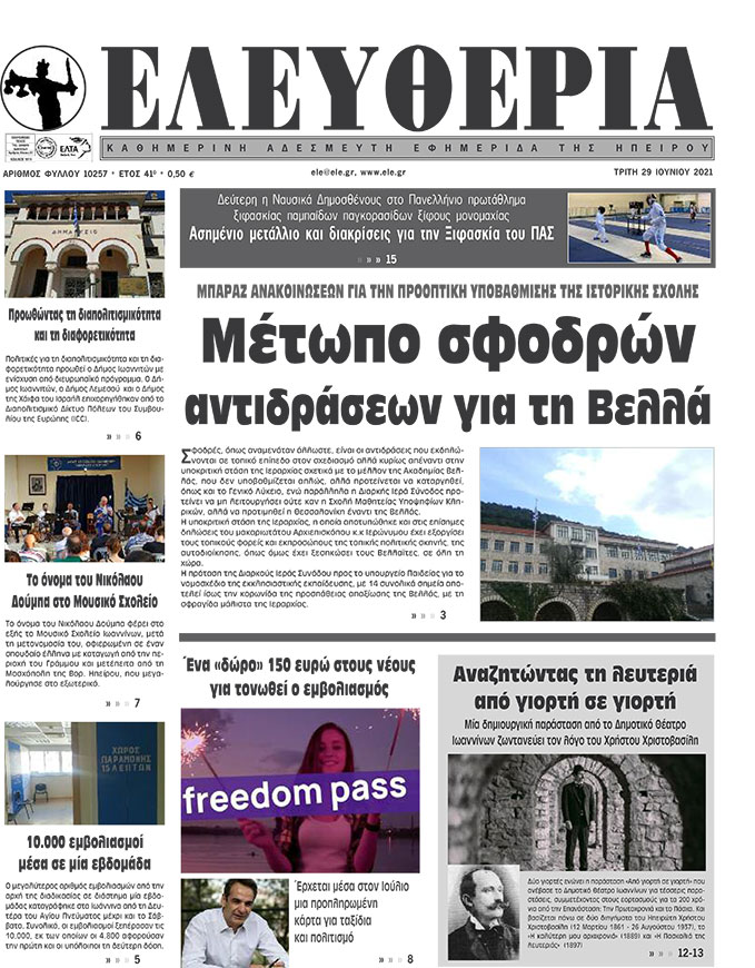 Διαβάστε στα πρωτοσέλιδα των γιαννιώτικων εφημερίδων της Τρίτης 29 Ιουνίου