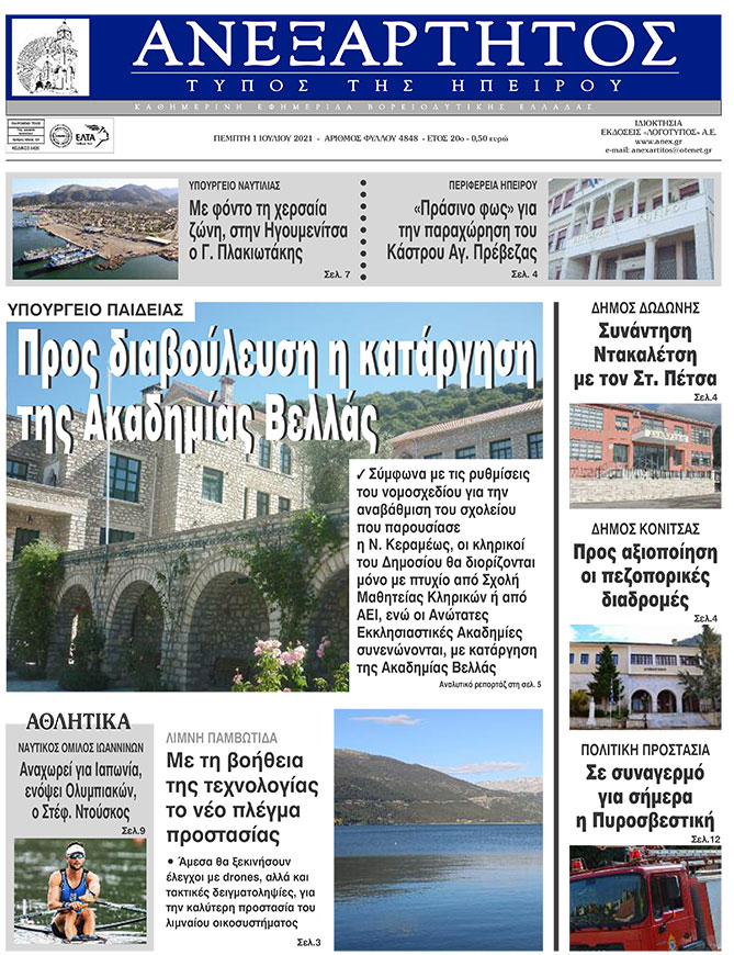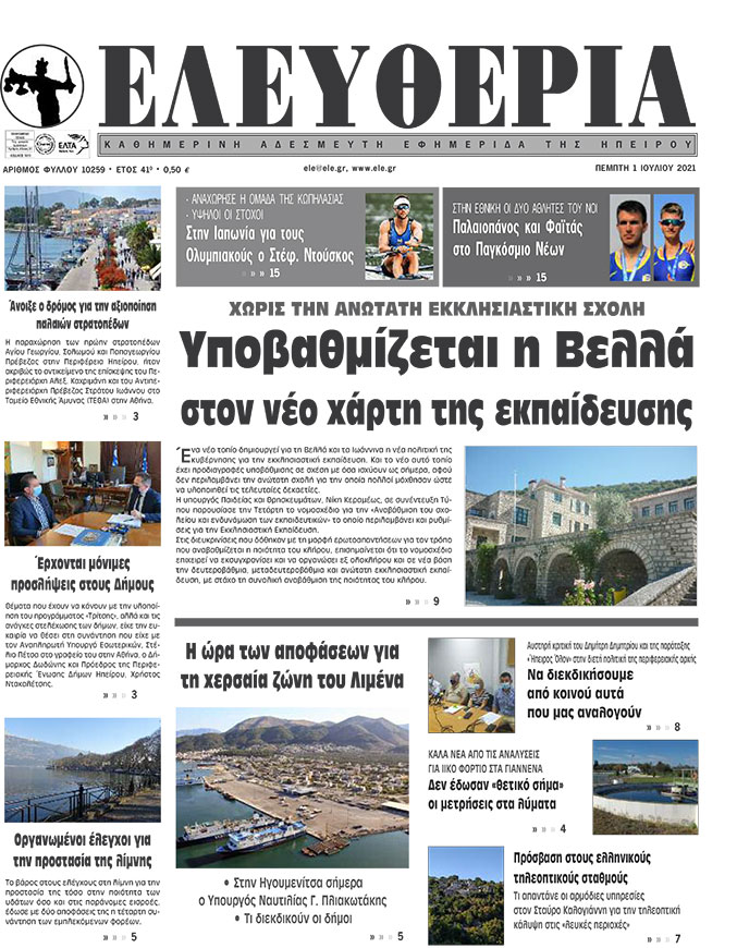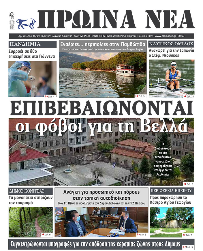 Διαβάστε στα πρωτοσέλιδα των γιαννιώτικων εφημερίδων της Πέμπτης 1 Ιουλίου