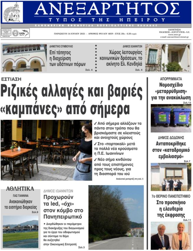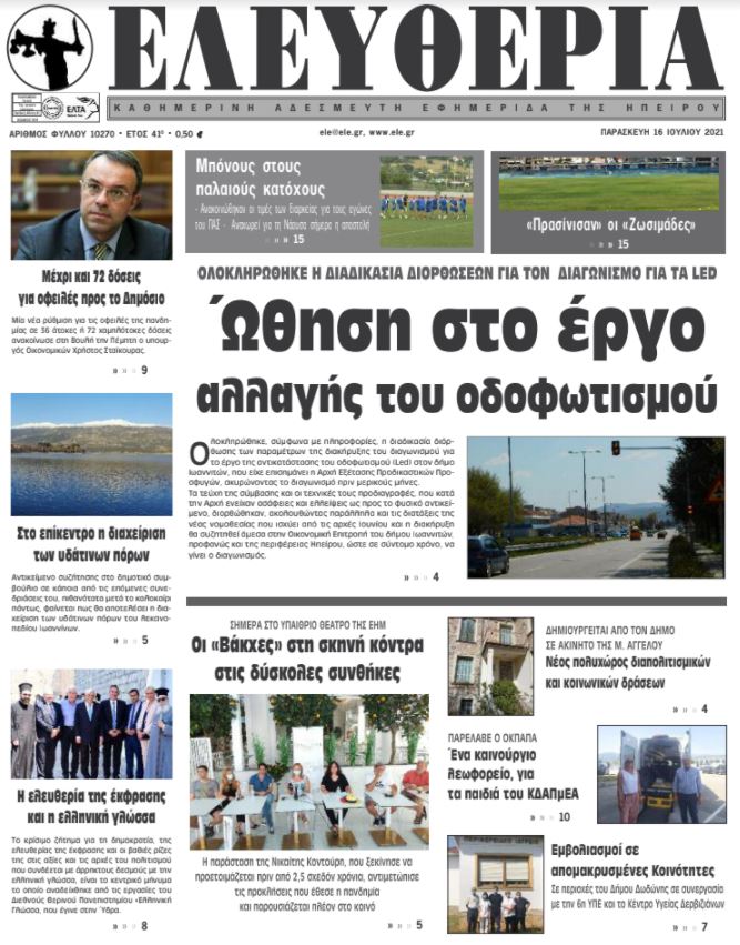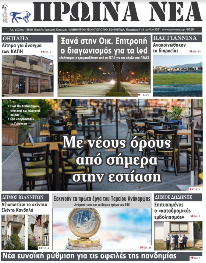 Διαβάστε στα πρωτοσέλιδα των γιαννιώτικων εφημερίδων της Παρασκευής 16 Ιουλίου
