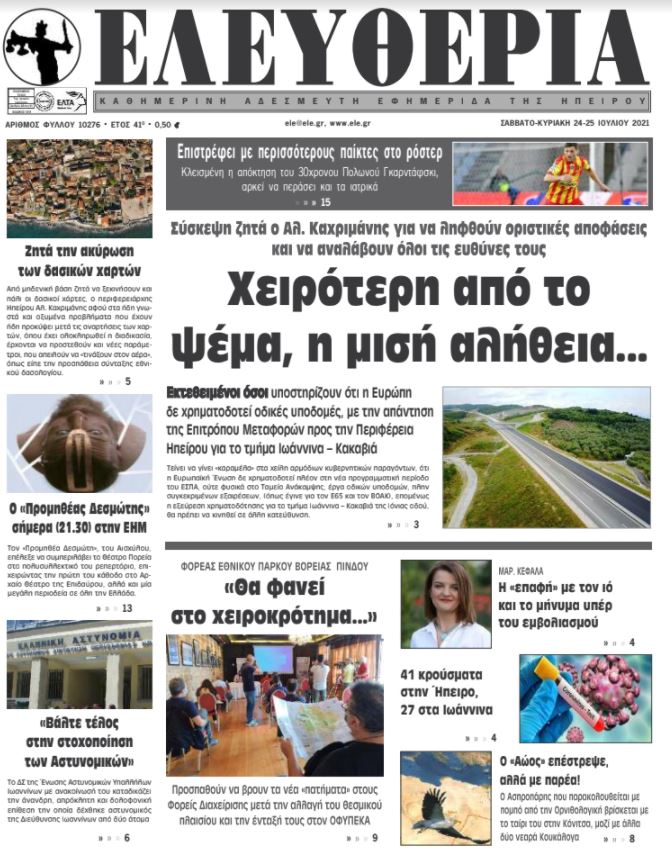ΑρχικήTOP STORIES TOP STORIESΗΠΕΙΡΟΣ Τα πρωτοσέλιδα των γιαννιώτικων εφημερίδων 24.07.2021 79 FacebookTwitterWhatsAppEmailΤυπώνωViber Διαβάστε στα πρωτοσέλιδα των γιαννιώτικων εφημερίδων του Σαββατοκύριακου 24-25 Ιουλίου TagsΓΙΑΝΝΙΩΤΙΚΕΣ ΕΦΗΜΕΡΙΔΕΣΠΡΩΤΟΣΕΛΙΔΑ FacebookTwitterWhatsAppEmailΤυπώνωViber Προηγούμενο άρθροΓερμανία: Τεράστιες καταστροφές από τις πλημμύρες – Καταστράφηκαν 600 χιλιόμετρα γραμμώνΕπόμενο άρθρο«Πρελούδιο στον έρωτα» στο Αρχαιολογικό Μουσείο Ιωαννίνων ΣΧΕΤΙΚΑ ΑΡΘΡΑ Τα πρωτοσέλιδα των γιαννιώτικων εφημερίδων TOP STORIES 08.11.2025 Τα πρωτοσέλιδα των γιαννιώτικων εφημερίδων ΗΠΕΙΡΟΣ 07.11.2025 Τα πρωτοσέλιδα των γιαννιώτικων εφημερίδων ΗΠΕΙΡΟΣ 06.11.2025 Τα πρωτοσέλιδα των γιαννιώτικων εφημερίδων ΗΠΕΙΡΟΣ 05.11.2025 Τα πρωτοσέλιδα των γιαννιώτικων εφημερίδων ΗΠΕΙΡΟΣ 04.11.2025 Τα πρωτοσέλιδα των γιαννιώτικων εφημερίδων TOP STORIES 01.11.2025 ΣΤΗΝ ΙΔΙΑ ΚΑΤΗΓΟΡΙΑ Συντάξεις Δεκεμβρίου: Πότε θα καταβληθούν TOP STORIES 10.11.2025 Παρέλαβε δέμα με ναρκωτικά από θυρίδα ταχυμεταφορών ΗΠΕΙΡΟΣ 10.11.2025 Ο «χάρτης» των πληρωμών από τον e-ΕΦΚΑ και τη ΔΥΠΑ έως την Παρασκευή 14 Νοεμβρίου TOP STORIES 10.11.2025 Κοινό των Ηπειρωτών: Ανάγκη για πλήρη διαφάνεια στις παρεμβάσεις στον Γράμμο ΗΠΕΙΡΟΣ 10.11.2025 Η Ελλάδα πρώτη στην ΕΕ σε πολίτες χωρίς αναγκαία ιατρική περίθαλψη TOP STORIES 10.11.2025 Μεγάλα προβλήματα από την κακοκαιρία σε Φιλιππιάδα, Πρέβεζα και Βόνιτσα ΗΠΕΙΡΟΣ 10.11.2025 ΜΗ ΧΑΣΕΤΕ Συντάξεις Δεκεμβρίου: Πότε θα καταβληθούν Ο «χάρτης» των πληρωμών από τον e-ΕΦΚΑ και τη ΔΥΠΑ έως την Παρασκευή 14 Νοεμβρίου Η Ελλάδα πρώτη στην ΕΕ σε πολίτες χωρίς αναγκαία ιατρική περίθαλψη Μεγάλα προβλήματα από την κακοκαιρία σε Φιλιππιάδα, Πρέβεζα και Βόνιτσα Ξεκινούν οι αιτήσεις για το επίδομα θέρμανσης ΔΗΜΟΦΙΛΗ Συνελήφθη οδηγός στην Ιόνια Οδό υπό την επήρεια αλκοόλ Ξεκινούν οι αιτήσεις για το επίδομα θέρμανσης Ισχυρές βροχές και καταιγίδες στα ηπειρωτικά και το Ιόνιο Αποφυλάκιση του Νικολά Σαρκοζί με όρους προτείνει η Εισαγγελία του Παρισιού Κοινό των Ηπειρωτών: Ανάγκη για πλήρη διαφάνεια στις παρεμβάσεις στον Γράμμο
