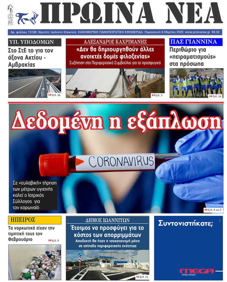 ΑρχικήΕΙΔΗΣΕΙΣΗΠΕΙΡΟΣ ΗΠΕΙΡΟΣ Τα πρωτοσέλιδα των γιαννιώτικων εφημερίδων 06.03.2020 267 FacebookTwitterWhatsAppEmailΤυπώνωViber Διαβάστε στα πρωτοσέλιδα των γιαννιώτικων εφημερίδων σήμερα, Παρασκευή 6 Μαρτίου. TagsΓΙΑΝΝΙΩΤΙΚΕΣ ΕΦΗΜΕΡΙΔΕΣΠΡΩΤΟΣΕΛΙΔΑ FacebookTwitterWhatsAppEmailΤυπώνωViber Προηγούμενο άρθροΠανελλήνιος Αγώνας τυφεκίου με διεθνείς συμμετοχέςΕπόμενο άρθροΔίχως εντάσεις, λόγω των εξελίξεων στα σύνορα ΣΧΕΤΙΚΑ ΑΡΘΡΑ Τα πρωτοσέλιδα των γιαννιώτικων εφημερίδων TOP STORIES 22.11.2025 Τα πρωτοσέλιδα των γιαννιώτικων εφημερίδων ΗΠΕΙΡΟΣ 21.11.2025 Τα πρωτοσέλιδα των γιαννιώτικων εφημερίδων TOP STORIES 20.11.2025 Τα πρωτοσέλιδα των γιαννιώτικων εφημερίδων ΗΠΕΙΡΟΣ 19.11.2025 Τα πρωτοσέλιδα των γιαννιώτικων εφημερίδων ΗΠΕΙΡΟΣ 18.11.2025 Τα πρωτοσέλιδα των γιαννιώτικων εφημερίδων ΗΠΕΙΡΟΣ 15.11.2025 ΣΤΗΝ ΙΔΙΑ ΚΑΤΗΓΟΡΙΑ Τα πρωτοσέλιδα των γιαννιώτικων εφημερίδων TOP STORIES 22.11.2025 Ημέρα Ενόπλων Δυνάμεων με αποκαλυπτήρια προτομών ΗΠΕΙΡΟΣ 21.11.2025 Έρευνες για φόλες στα Τζουμέρκα μετά τον θάνατο κυνηγετικών σκύλων ΗΠΕΙΡΟΣ 21.11.2025 Σε δημόσια πρόσκληση για την αξιοποίηση του Ξενία Ηγουμενίτσας προχωρά η ΕΤΑΔ ΗΠΕΙΡΟΣ 21.11.2025 Ήχησε το «112» στα Ιωάννινα ΗΠΕΙΡΟΣ 21.11.2025 Υπερχείλιση του Αράχθου στην Πλάκα – Φερτά υλικά κάλυψαν τη γέφυρα Μπέλεϋ ΗΠΕΙΡΟΣ 21.11.2025 ΜΗ ΧΑΣΕΤΕ Ικανοποίηση για τη μείωση της ανεργίας Τα πρωτοσέλιδα των γιαννιώτικων εφημερίδων Ημέρα Ενόπλων Δυνάμεων με αποκαλυπτήρια προτομών Ήχησε το «112» στα Ιωάννινα Υπερχείλιση του Αράχθου στην Πλάκα – Φερτά υλικά κάλυψαν τη γέφυρα Μπέλεϋ ΔΗΜΟΦΙΛΗ ΣΤΟΙΧΕΙΑ ΤΗΣ ΕΛΣΤΑΤ -Αυξήθηκαν οι συμβολαιογραφικές πράξεις Ο Γιώργος Στύλιος για το νομοσχέδιο για την ΕΡΤ Δράσεις ενημέρωσης για τον Σεισμικό Κίνδυνο 81.651 αιτήσεις στο North Evia Pass 2025