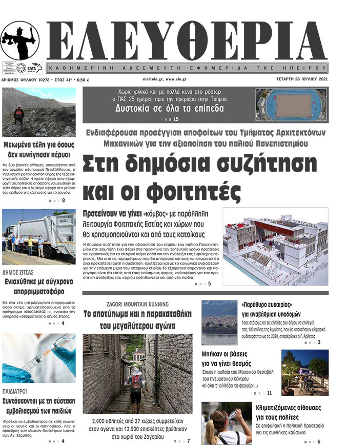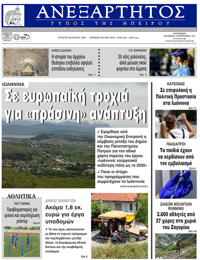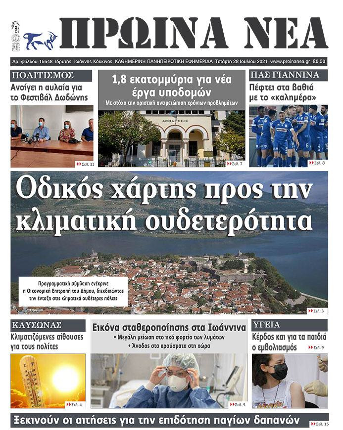 Διαβάστε στα πρωτοσέλιδα των γιαννιώτικων εφημερίδων της Τετάρτης 28 Ιουλίου
