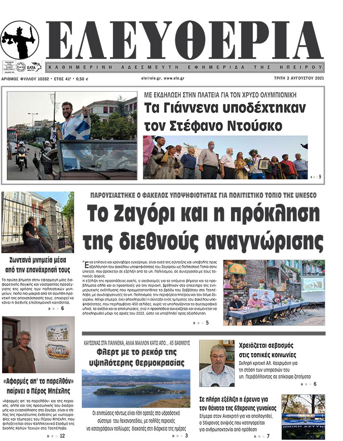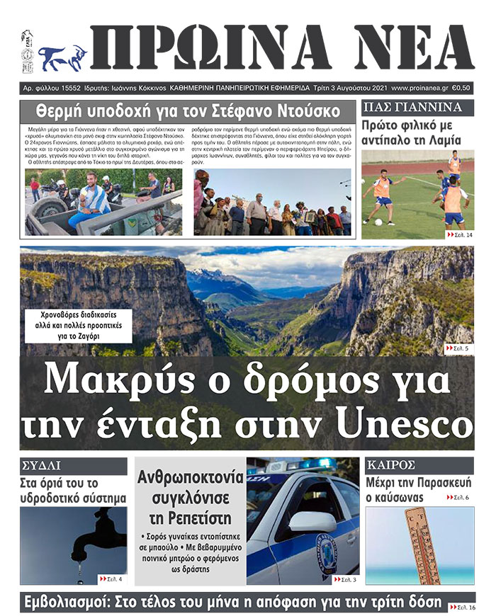 ΑρχικήΕΙΔΗΣΕΙΣΗΠΕΙΡΟΣ ΗΠΕΙΡΟΣ Τα πρωτοσέλιδα των γιαννιώτικων εφημερίδων 03.08.2021 170 FacebookTwitterWhatsAppEmailΤυπώνωViber Διαβάστε στα πρωτοσέλιδα των γιαννιώτικων εφημερίδων της Τρίτης 3 Αυγούστου TagsΓΙΑΝΝΙΩΤΙΚΕΣ ΕΦΗΜΕΡΙΔΕΣΠΡΩΤΟΣΕΛΙΔΑ FacebookTwitterWhatsAppEmailΤυπώνωViber Προηγούμενο άρθροΒρετανία: Λιγότεροι άνθρωποι σε καραντίνα, εφόσον ήρθαν σε επαφή με κρούσμαΕπόμενο άρθροΔραματική η κατάσταση στις καλλιέργειες καλαμποκιού ΣΧΕΤΙΚΑ ΑΡΘΡΑ Τα πρωτοσέλιδα των γιαννιώτικων εφημερίδων TOP STORIES 27.11.2025 Τα πρωτοσέλιδα των γιαννιώτικων εφημερίδων ΗΠΕΙΡΟΣ 26.11.2025 Τα πρωτοσέλιδα των γιαννιώτικων εφημερίδων ΗΠΕΙΡΟΣ 25.11.2025 Τα πρωτοσέλιδα των γιαννιώτικων εφημερίδων ΗΠΕΙΡΟΣ 22.11.2025 Τα πρωτοσέλιδα των γιαννιώτικων εφημερίδων ΗΠΕΙΡΟΣ 21.11.2025 Τα πρωτοσέλιδα των γιαννιώτικων εφημερίδων TOP STORIES 20.11.2025 ΣΤΗΝ ΙΔΙΑ ΚΑΤΗΓΟΡΙΑ Στο Μέτσοβο η Ολυμπιακή Φλόγα την Παρασκευή ΗΠΕΙΡΟΣ 27.11.2025 Σύλληψη για ηχορύπανση από κατάστημα διασκέδασης ΗΠΕΙΡΟΣ 27.11.2025 Δικογραφία για απάτη 3.000 ευρώ στην Άρτα ΗΠΕΙΡΟΣ 27.11.2025 Αιτήσεις για αποζημίωση πλημμυροπαθών στον Δήμο Ζηρού – Τα δικαιολογητικά ΗΠΕΙΡΟΣ 27.11.2025 Κατολίσθηση στην Άγναντα – Ανήσυχοι οι κάτοικοι ΗΠΕΙΡΟΣ 27.11.2025 Σε ετοιμότητα Περιφέρεια και δήμοι για το νέο κύμα κακοκαιρίας ΗΠΕΙΡΟΣ 27.11.2025 ΜΗ ΧΑΣΕΤΕ Μητσοτάκης: Αύριο η επιστροφή ενοικίου για 1 εκατ. πολίτες Πότε θα καταβληθούν οι συντάξεις Ιανουαρίου Κατολίσθηση στην Άγναντα – Ανήσυχοι οι κάτοικοι Σε ετοιμότητα Περιφέρεια και δήμοι για το νέο κύμα κακοκαιρίας Κατηγορίες κατά του Δήμου για αδιαφορία μετά την πτώση δέντρου ΔΗΜΟΦΙΛΗ Κατηγορίες κατά του Δήμου για αδιαφορία μετά την πτώση δέντρου Πότε θα καταβληθούν οι συντάξεις Ιανουαρίου Σε ετοιμότητα Περιφέρεια και δήμοι για το νέο κύμα κακοκαιρίας Στην Τουρκία ο Πάπας Λέων ΙΔ’ – Ιστορική επίσκεψη στο Φανάρι Άνοιγμα με πτώση 0,14% στο Χρηματιστήριο Αθηνών