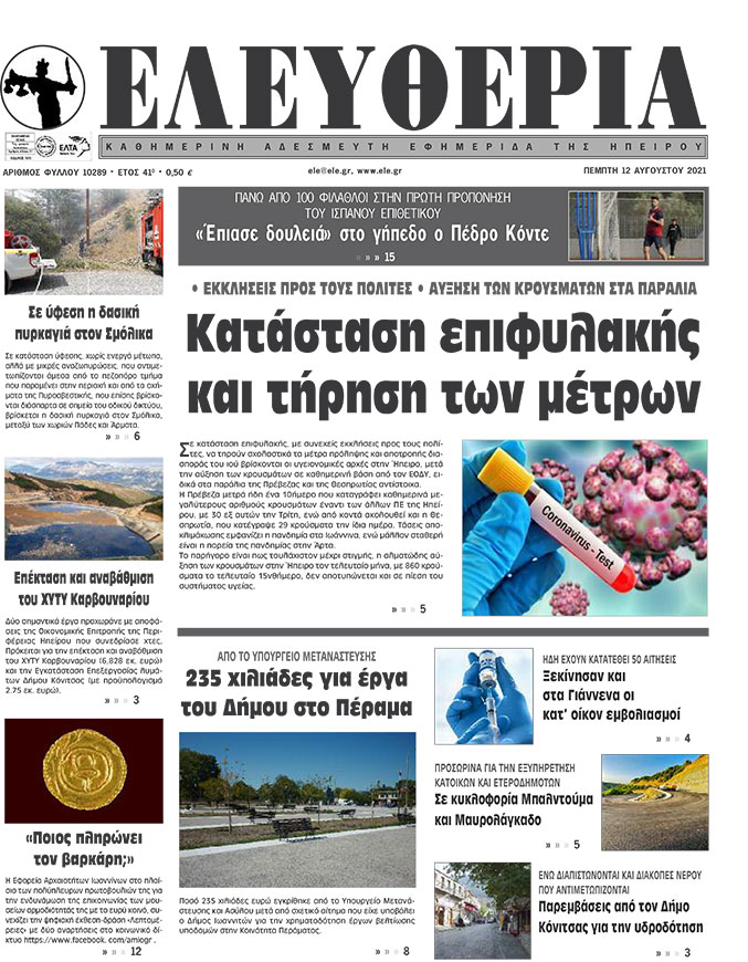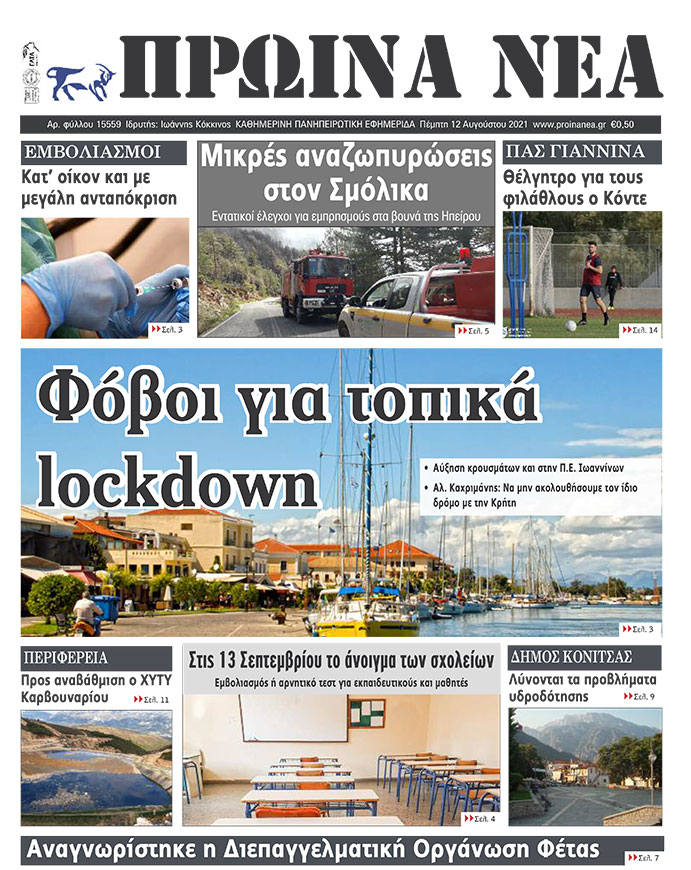 Διαβάστε στα πρωτοσέλιδα των γιαννιώτικων εφημερίδων της Πέμπτης 12 Αυγούστου