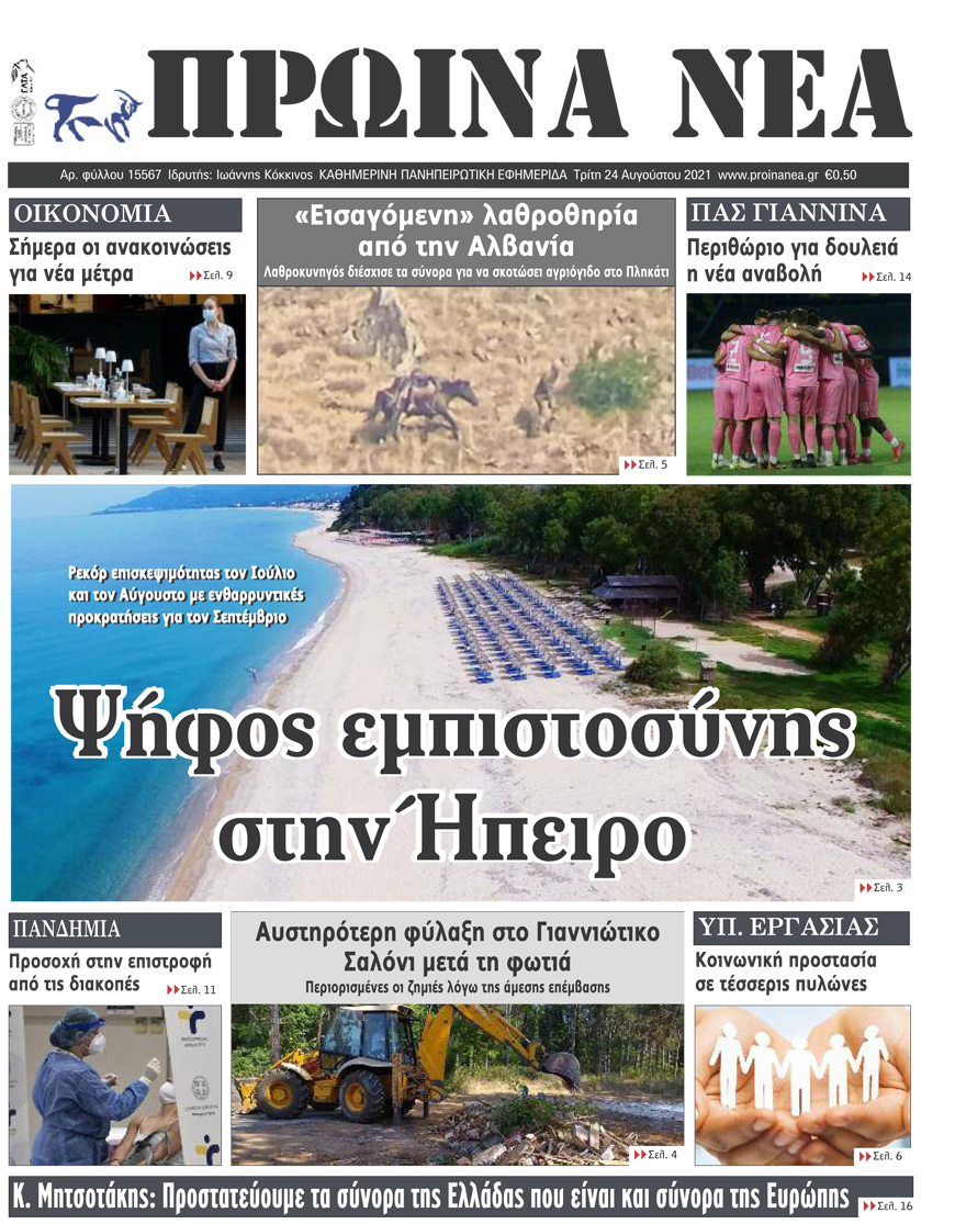 ΑρχικήΕΙΔΗΣΕΙΣΗΠΕΙΡΟΣ ΗΠΕΙΡΟΣ Τα πρωτοσέλιδα των γιαννιώτικων εφημερίδων 24.08.2021 84 FacebookTwitterWhatsAppEmailΤυπώνωViber Διαβάστε στα πρωτοσέλιδα των γιαννιώτικων εφημερίδων της Τρίτης 24 Αυγούστου TagsΓΙΑΝΝΙΩΤΙΚΕΣ ΕΦΗΜΕΡΙΔΕΣΠΡΩΤΟΣΕΛΙΔΑ FacebookTwitterWhatsAppEmailΤυπώνωViber Προηγούμενο άρθροMέτρα για τους ανεμβολίαστους-Ανακοινώσεις στις 12 το μεσημέριΕπόμενο άρθροΈφυγε από την ζωή ο Ανέστης Βλάχος ΣΧΕΤΙΚΑ ΑΡΘΡΑ Τα πρωτοσέλιδα των γιαννιώτικων εφημερίδων TOP STORIES 21.11.2025 Τα πρωτοσέλιδα των γιαννιώτικων εφημερίδων TOP STORIES 20.11.2025 Τα πρωτοσέλιδα των γιαννιώτικων εφημερίδων ΗΠΕΙΡΟΣ 19.11.2025 Τα πρωτοσέλιδα των γιαννιώτικων εφημερίδων ΗΠΕΙΡΟΣ 18.11.2025 Τα πρωτοσέλιδα των γιαννιώτικων εφημερίδων ΗΠΕΙΡΟΣ 15.11.2025 Τα πρωτοσέλιδα των γιαννιώτικων εφημερίδων ΗΠΕΙΡΟΣ 14.11.2025 ΣΤΗΝ ΙΔΙΑ ΚΑΤΗΓΟΡΙΑ Σε δημόσια πρόσκληση για την αξιοποίηση του Ξενία Ηγουμενίτσας προχωρά η ΕΤΑΔ ΗΠΕΙΡΟΣ 21.11.2025 Ήχησε το «112» στα Ιωάννινα ΗΠΕΙΡΟΣ 21.11.2025 Υπερχείλιση του Αράχθου στην Πλάκα – Φερτά υλικά κάλυψαν τη γέφυρα Μπέλεϋ ΗΠΕΙΡΟΣ 21.11.2025 Σε κατάσταση έκτακτης ανάγκης Ζηρός, Ζαγόρι και Φιλιάτες ΗΠΕΙΡΟΣ 21.11.2025 Προβλήματα στον οδοφωτισμό λόγω της κακοκαιρίας ΗΠΕΙΡΟΣ 21.11.2025 Σε κατάσταση έκτακτης ανάγκης ζητά να κηρυχθεί ο Δήμος Πωγωνίου ΗΠΕΙΡΟΣ 21.11.2025 ΜΗ ΧΑΣΕΤΕ Ήχησε το «112» στα Ιωάννινα Υπερχείλιση του Αράχθου στην Πλάκα – Φερτά υλικά κάλυψαν τη γέφυρα Μπέλεϋ Σε κατάσταση έκτακτης ανάγκης Ζηρός, Ζαγόρι και Φιλιάτες Βροχές ενάμιση μήνα μέσα σε 48 ώρες στην Ήπειρο Τα πρωτοσέλιδα των γιαννιώτικων εφημερίδων ΔΗΜΟΦΙΛΗ Βροχές ενάμιση μήνα μέσα σε 48 ώρες στην Ήπειρο Κατολισθήσεις στον Δήμο Βορ. Τζουμέρκων – Έκκληση για προσοχή Europol: Εγκληματικά δίκτυα στρατολογούν παιδιά μέσω βιντεοπαιχνιδιών για να σκοτώνουν Σαγιάδα: Ουρές χιλιομέτρων λόγω της κακοκαιρίας Σε κατάσταση έκτακτης ανάγκης ζητά να κηρυχθεί ο Δήμος Πωγωνίου