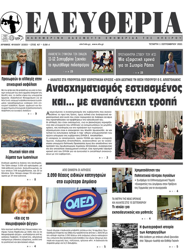 ΑρχικήTOP STORIES TOP STORIESΗΠΕΙΡΟΣ Τα πρωτοσέλιδα των γιαννιώτικων εφημερίδων 01.09.2021 64 FacebookTwitterWhatsAppEmailΤυπώνωViber Διαβάστε στα πρωτοσέλιδα των γιαννιώτικων εφημερίδων της Τετάρτης 1 Σεπτεμβρίου TagsΓΙΑΝΝΙΩΤΙΚΕΣ ΕΦΗΜΕΡΙΔΕΣΠΡΩΤΟΣΕΛΙΔΑ FacebookTwitterWhatsAppEmailΤυπώνωViber Προηγούμενο άρθροΟ Σύλλογος Φοιτητών Οδοντιατρικής Ευρωπαϊκού Πανεπιστημίου, μέλος της Ευρωπαϊκής Εταιρείας Φοιτητών ΟδοντιατρικήςΕπόμενο άρθροΑλλοδαπός είχε δεμένους δύο σκύλους σε δέντρα ΣΧΕΤΙΚΑ ΑΡΘΡΑ Τα πρωτοσέλιδα των γιαννιώτικων εφημερίδων TOP STORIES 13.11.2025 Τα πρωτοσέλιδα των γιαννιώτικων εφημερίδων ΗΠΕΙΡΟΣ 12.11.2025 Τα πρωτοσέλιδα των γιαννιώτικων εφημερίδων ΗΠΕΙΡΟΣ 11.11.2025 Τα πρωτοσέλιδα των γιαννιώτικων εφημερίδων TOP STORIES 08.11.2025 Τα πρωτοσέλιδα των γιαννιώτικων εφημερίδων ΗΠΕΙΡΟΣ 07.11.2025 Τα πρωτοσέλιδα των γιαννιώτικων εφημερίδων ΗΠΕΙΡΟΣ 06.11.2025 ΣΤΗΝ ΙΔΙΑ ΚΑΤΗΓΟΡΙΑ Ανακοινώσεις του Δημάρχου Αρταίων Χριστ. Σιαφάκα στο Δημοτικό Συμβούλιο ΗΠΕΙΡΟΣ 13.11.2025 Δύο συλλήψεις για διαδοχικές κλοπές από σούπερ-μάρκετ ΗΠΕΙΡΟΣ 13.11.2025 Επιχείρηση της Αστυνομίας Ιωαννίνων στον Πειραιά – Σύλληψη για ναρκωτικά και οπλισμό TOP STORIES 13.11.2025 Τιμητική διάκριση για τον Διευθυντή της Ογκολογικής Κλινικής του ΠΓΝΙ, Στέργιο Μπούσιο ΗΠΕΙΡΟΣ 13.11.2025 Χρηματοδοτείται η επέκταση του Γηροκομείου Φιλιατών ΗΠΕΙΡΟΣ 13.11.2025 Έντονη διαμαρτυρία για την ανακατανομή της έκτακτης καταβολής των ΚΑΠ ΗΠΕΙΡΟΣ 13.11.2025 ΜΗ ΧΑΣΕΤΕ Επιχείρηση της Αστυνομίας Ιωαννίνων στον Πειραιά – Σύλληψη για ναρκωτικά και οπλισμό Δένδρο στην πλατεία, συναυλία στο Πνευματικό Κέντρο; «Λεόντειοι όροι» στη σύμβαση για τα LED Συνεργασία με τον ΟΦΥΠΕΚΑ για το παραλίμνιο μέτωπο του Δήμου Ιωαννιτών Στο… περίμενε οι πυρόπληκτοι του Δήμου Ζηρού ΔΗΜΟΦΙΛΗ Αποκαλυπτήρια προτομών την Ημέρα των Ενόπλων Δυνάμεων Μπατακλάν: 10 χρόνια από τη φρικτή τζιχαντιστική επίθεση στο Παρίσι Χρηματοδοτείται η επέκταση του Γηροκομείου Φιλιατών Ψαράς έπιασε καρχαρία μάκο με πετονιά Στο… περίμενε οι πυρόπληκτοι του Δήμου Ζηρού