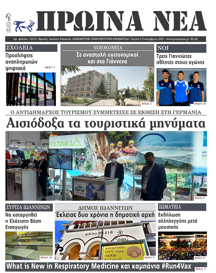 Διαβάστε στα πρωτοσέλιδα των γιαννιώτικων εφημερίδων της Πέμπτης 2 Σεπτεμβρίου
